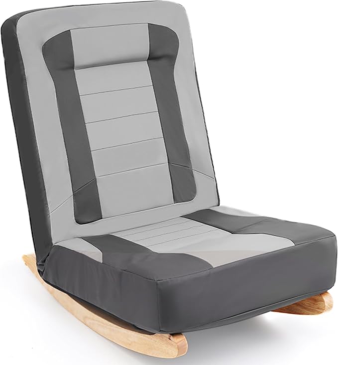 TOPSKY Floor Rocking Gaming Chair, Reclining Padded Backrest Chair with 5 Adjustable Positions and Solid Wood Base for Gaming and Relaxing (Black and Grey, Regular)