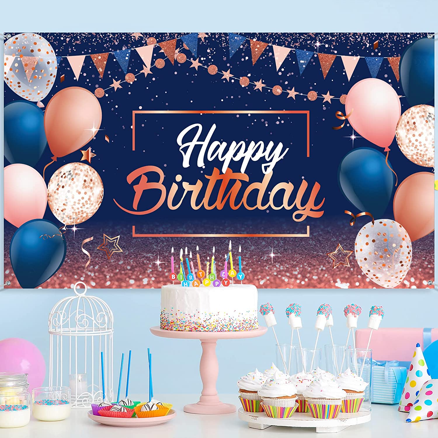 • Package content: there is 1 piece of happy birthday sign backdrop, designed in navy blue and sliver, and printed with classic patterns of balloons, gifts, glittery stars, adding an impressive touch to the birthday party, serving as an ideal decoration to create a memorable atmosphere for your birthday
