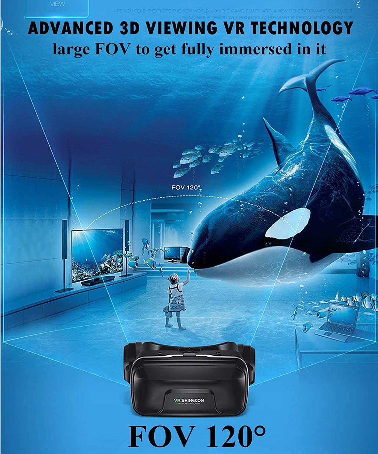 • ADVANCED GAMING & WATCHING TECHNOLOGY VR HEADEST: HD optical lens with large viewing angle, eyes protection system & 3D high quality over ears 360°stereo headphones, this virtual reality headset will bring you into a much more realistic 360° immersive virtual reality world to enjoy the great fun of watching 3D movies/games, riding roller coaster, skydiving etc. No dizzy nor distortion