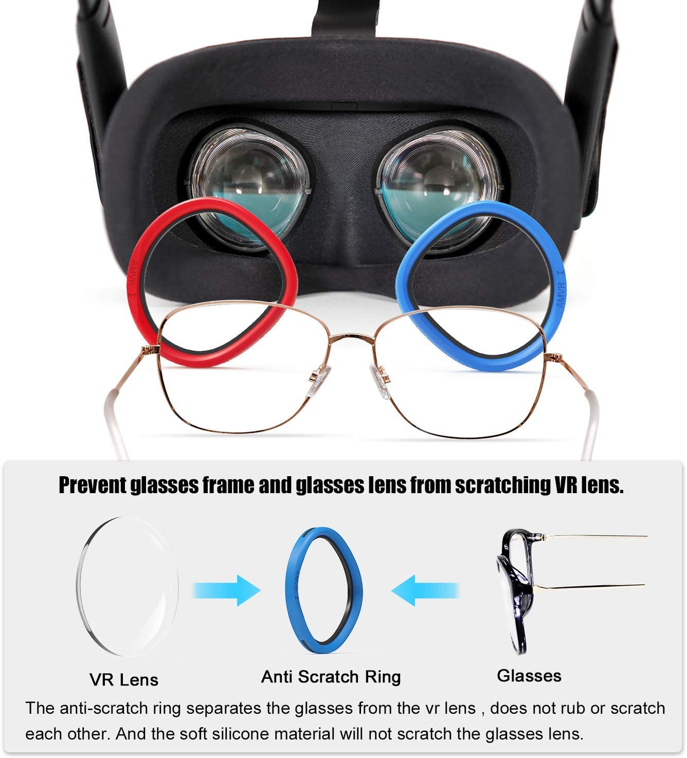 AMVR Lens Anti-Scratch Ring Protecting Myopia Glasses from Scratching VR Headset Lens Compatible for Quest 2/Quest/Rift S/Go