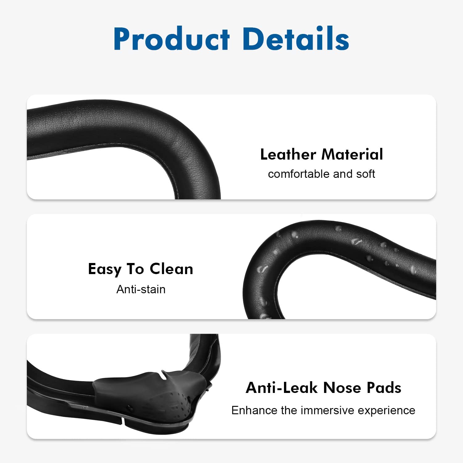 • ✓ Please Note: Include two PU Leather Foam, one Face Interface Replaceable Plastic Frame,and one Anti-leakage Nose Pad! But Not include oculus rift headset.