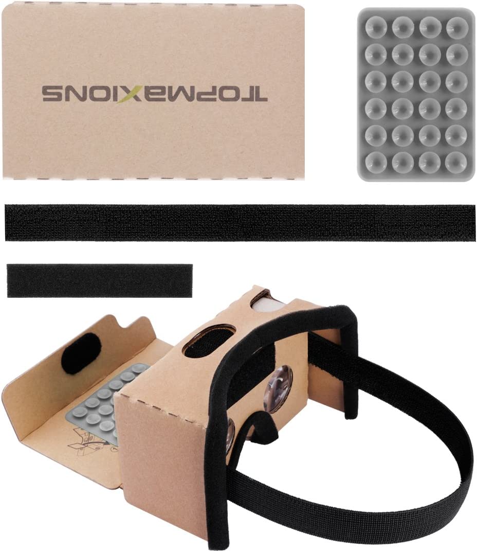 Google Cardboard,Topmaxions 3D VR Virtual Reality DIY VR Headset for 3D Movies and Games Compatible with Android & Apple Up to 6 Inch Easy Setup Machine