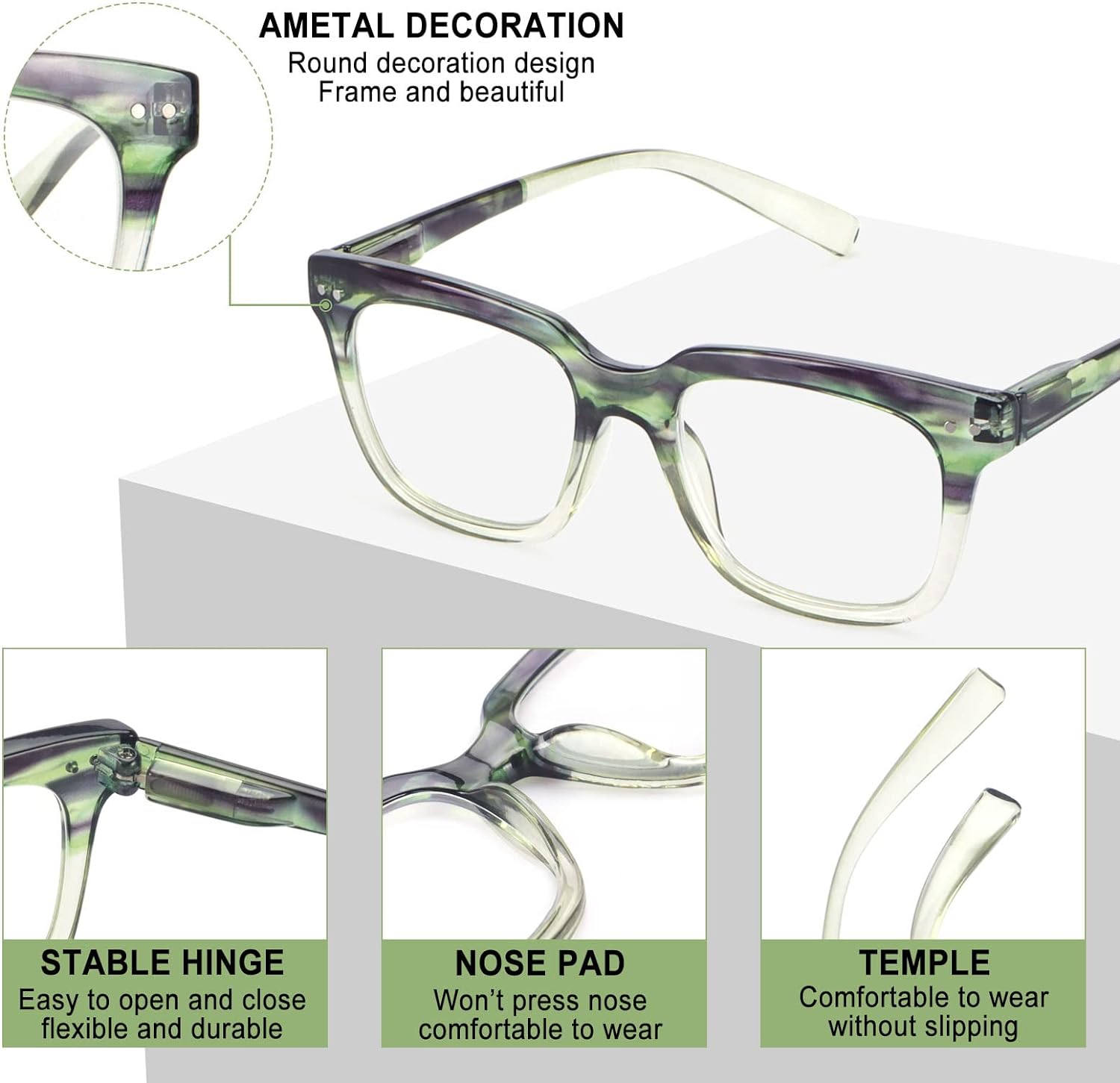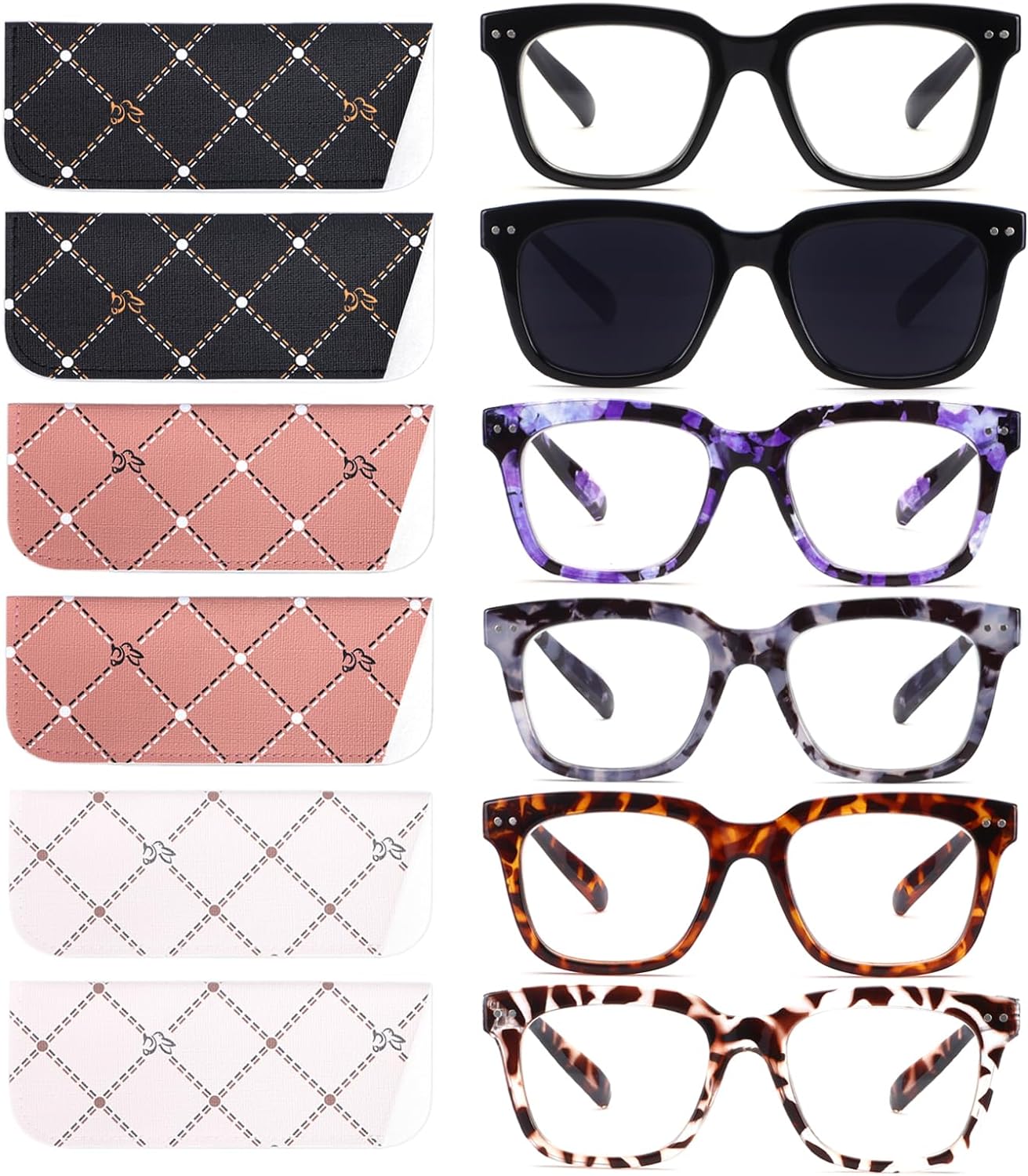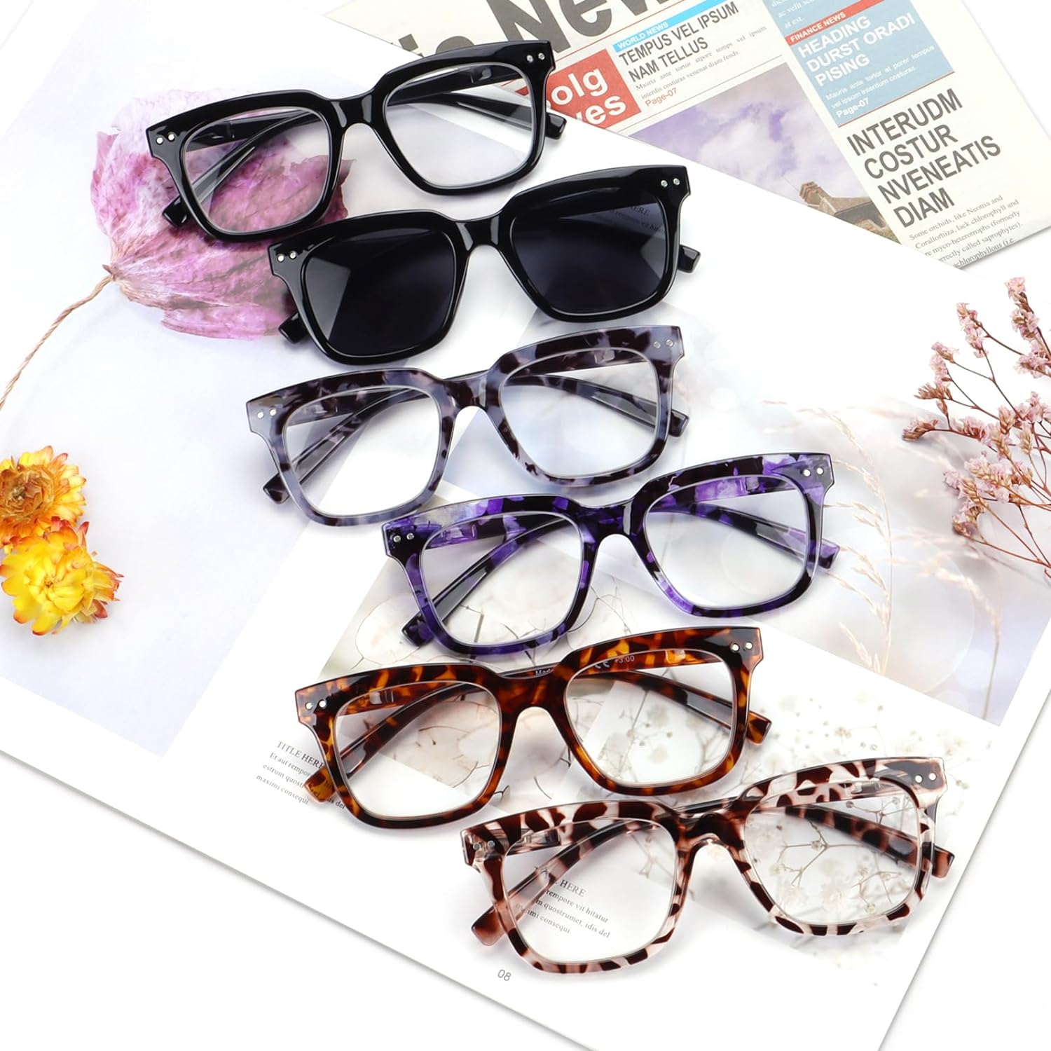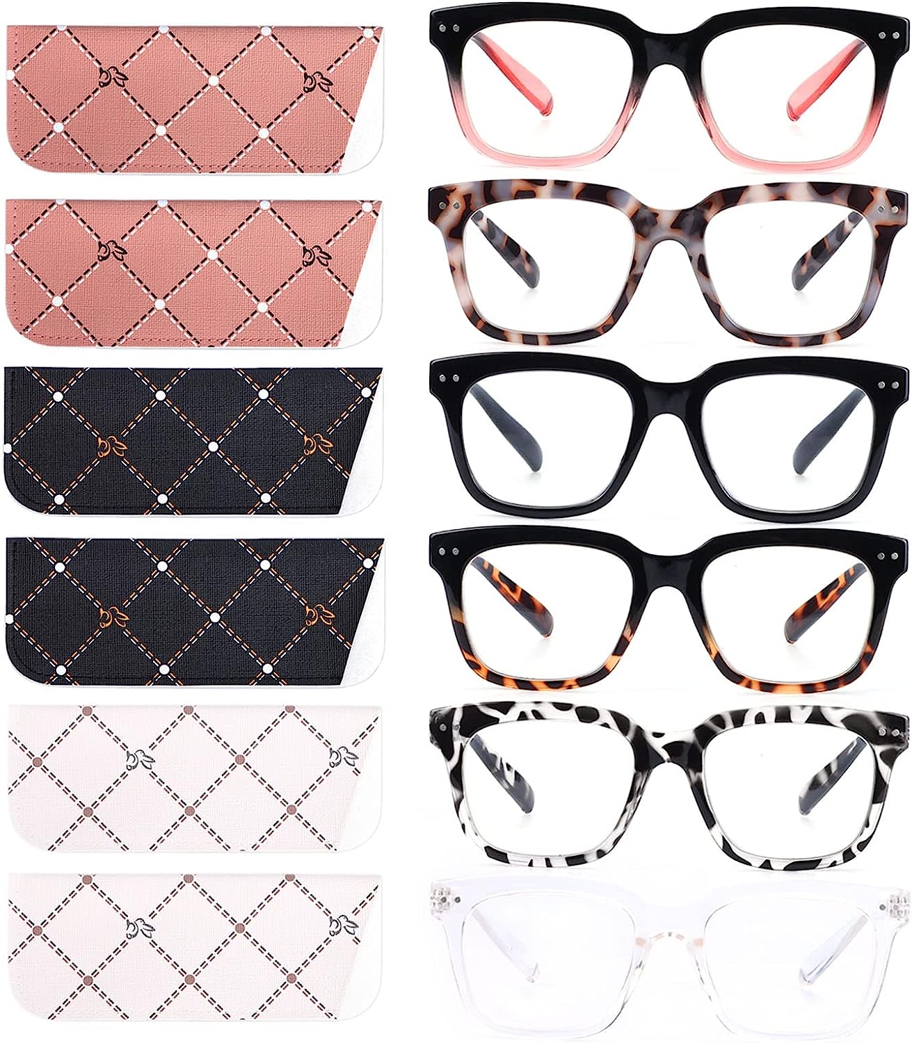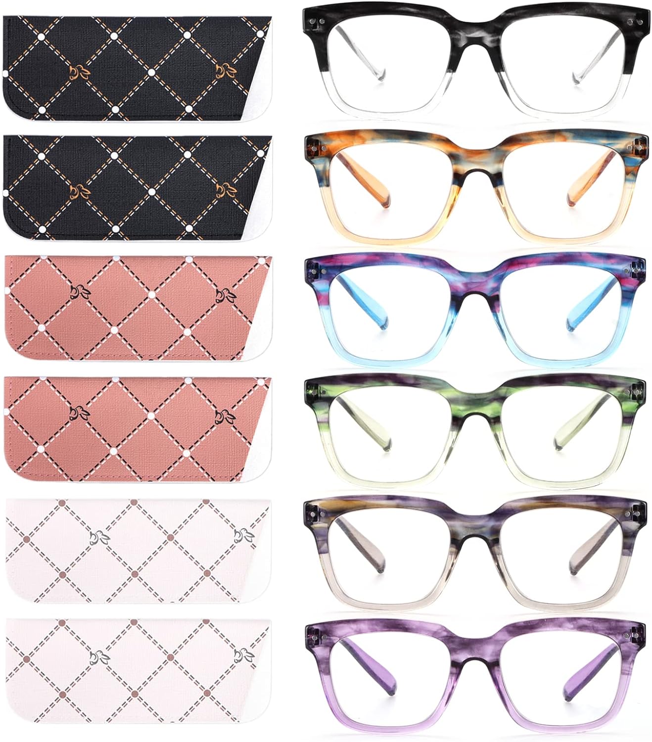 CHOFILORD 6 Pack Fashion Reading Glasses for Women Men Blue Light Blocking Oversized Square Readers with Spring Hinge