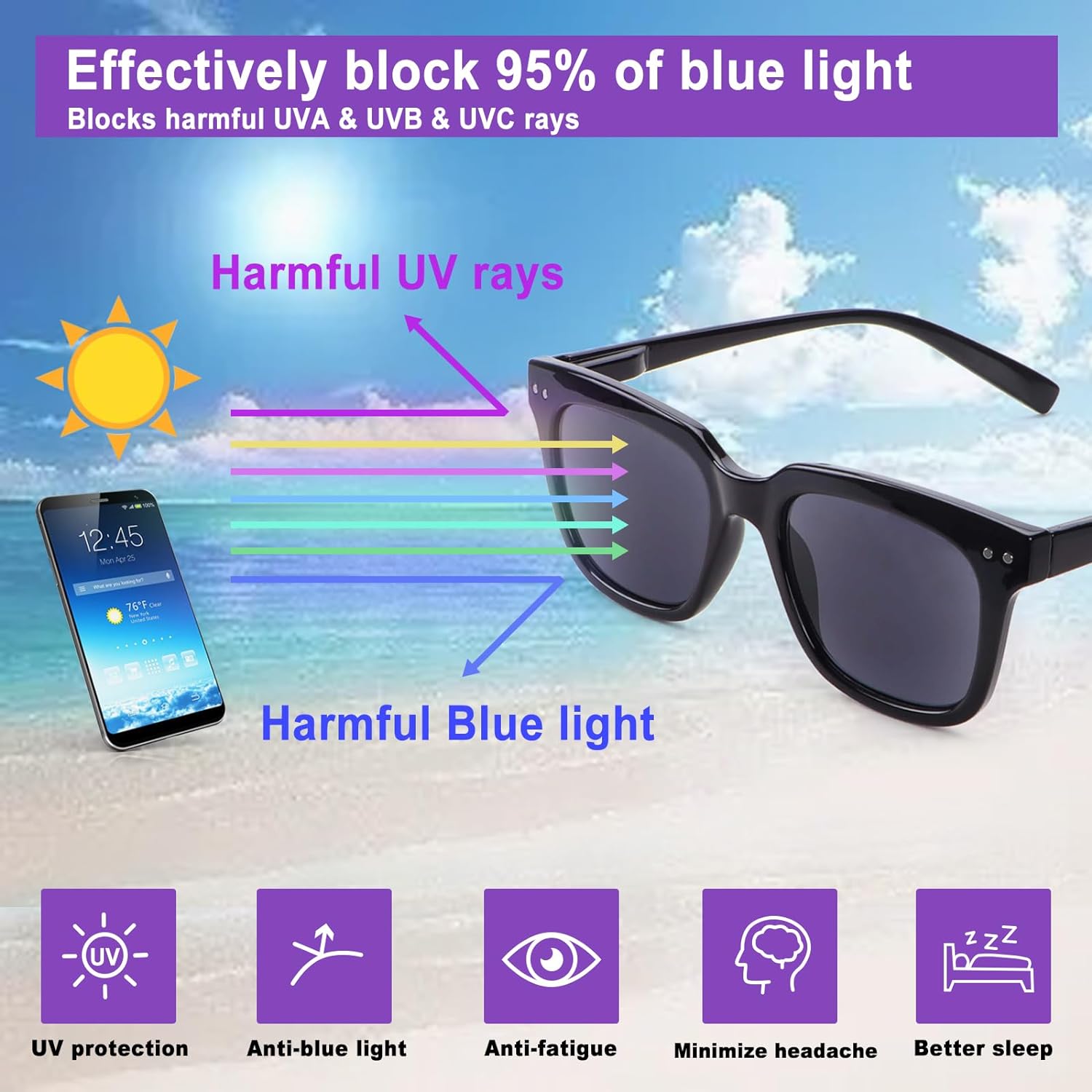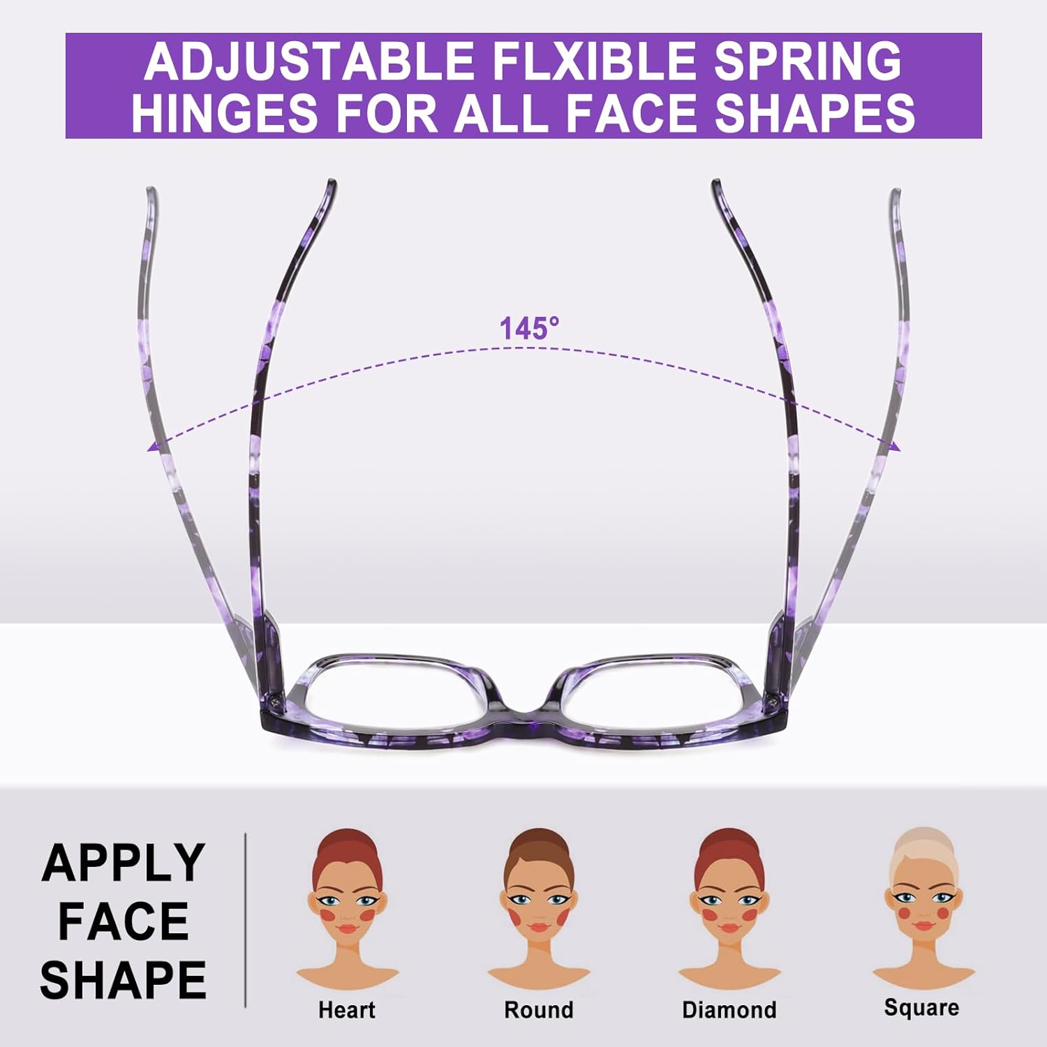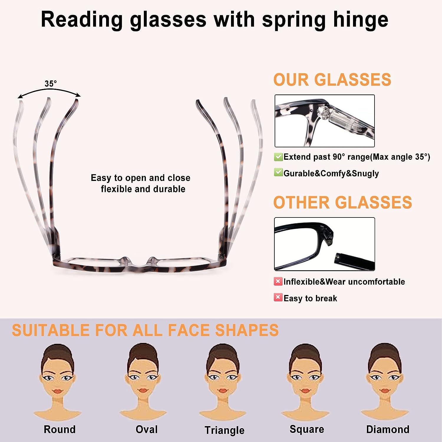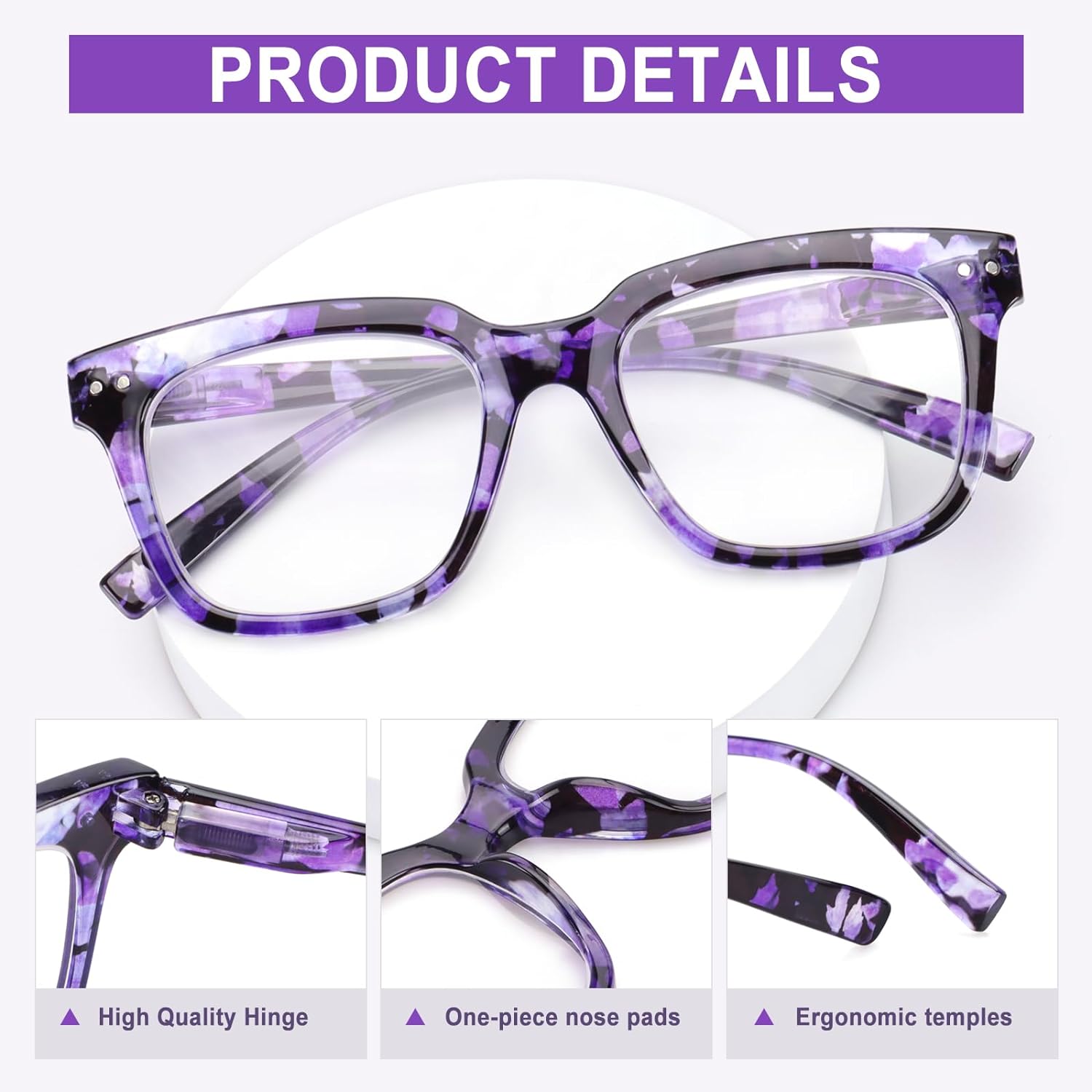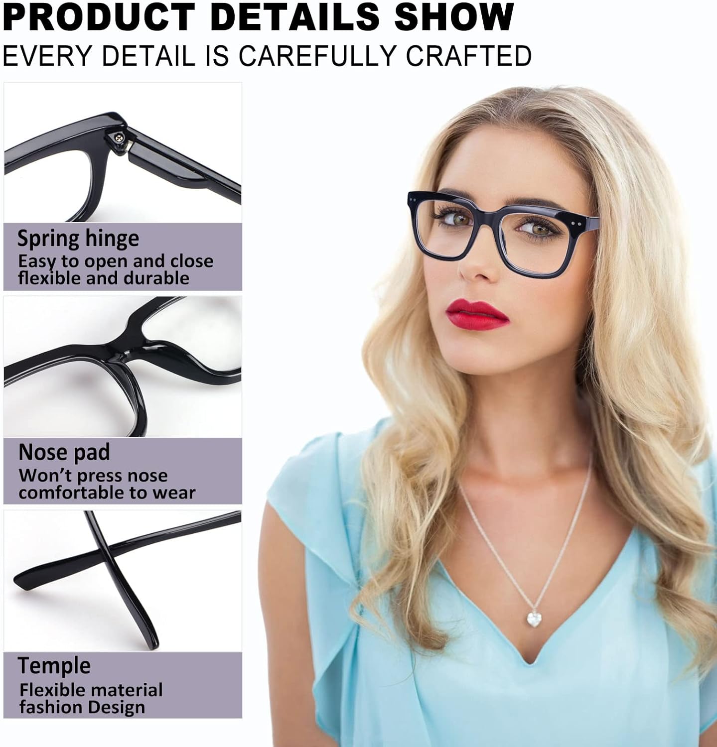 CHOFILORD 6 Pack Fashion Reading Glasses for Women Men Blue Light Blocking Oversized Square Readers with Spring Hinge