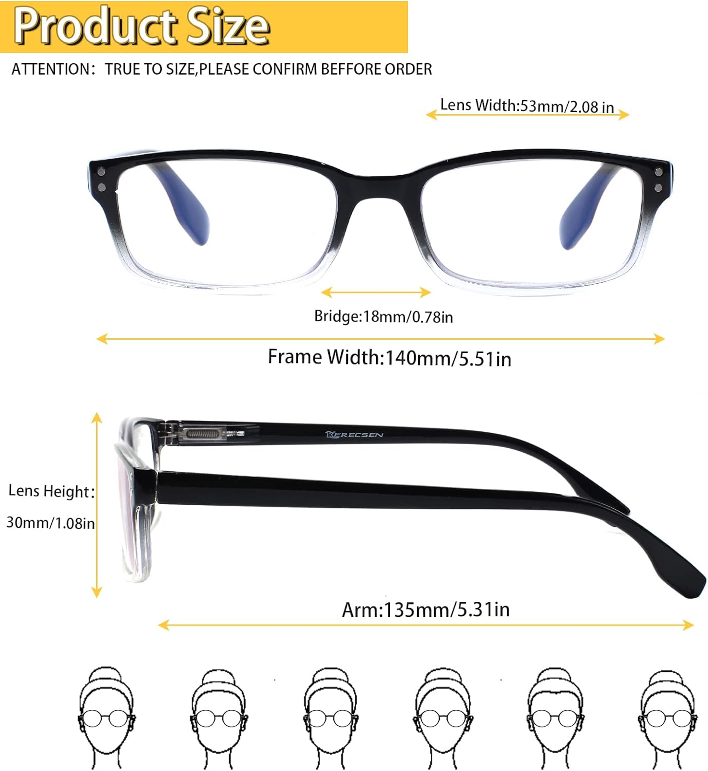 Kerecsen 4 Pack Reading Glasses for Women/Men Spring Hinges Readers Glasses Lightweight Eyeglasses