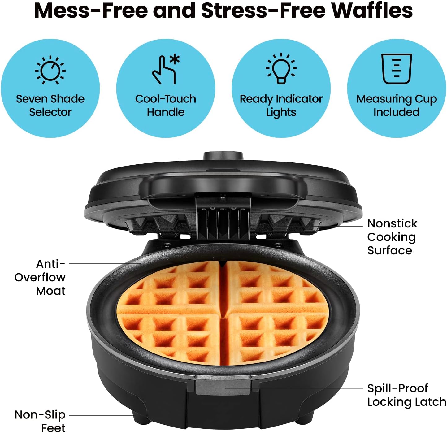 • Makes 6-Inch Round Waffles