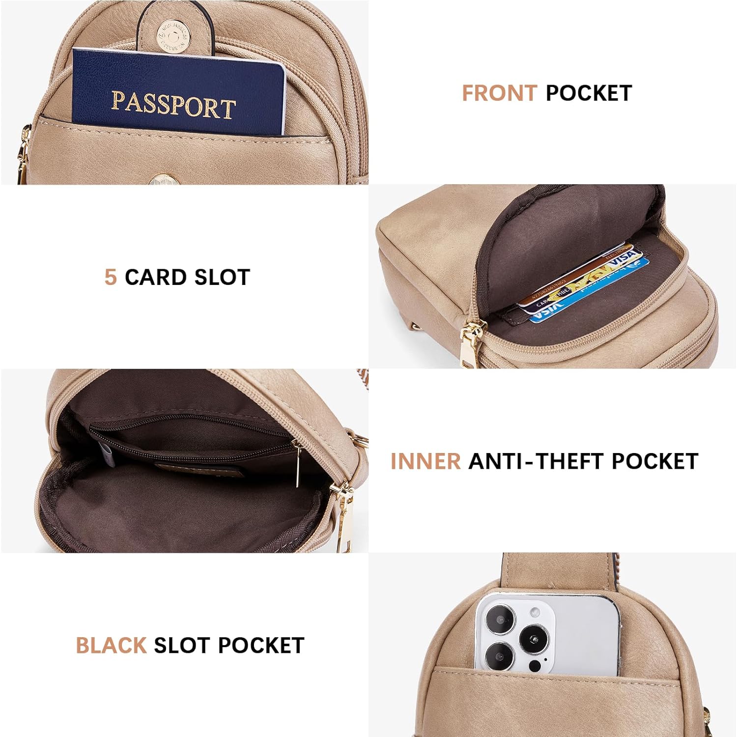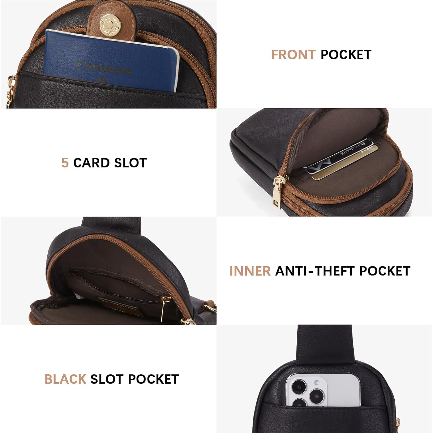 • Multiple Pockets, Large Capacity - This crossbody sling bag has 4 pockets, 1 lined zip pocket, 5 card slots. The ample space can hold your wallet, phone, sunscreen, cosmetics, keys, cards, and other necessary items. Multiple compartments allow you to organize and distribute your items better, making it easy to find when you need
