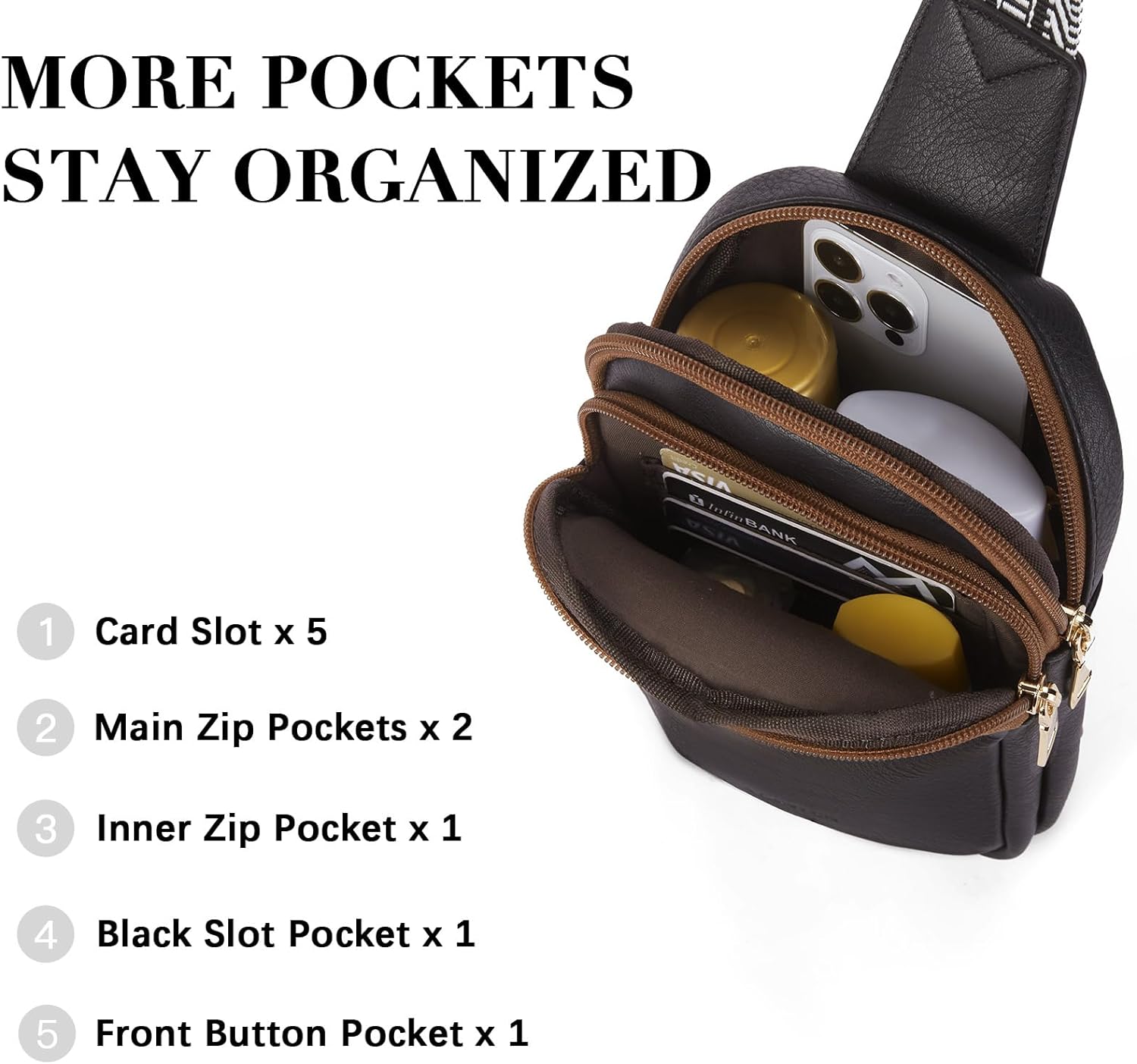 • Multiple Pockets, Large Capacity - This crossbody sling bag has 4 pockets, 1 lined zip pocket, 5 card slots. The ample space can hold your wallet, phone, sunscreen, cosmetics, keys, cards, and other necessary items. Multiple compartments allow you to organize and distribute your items better, making it easy to find when you need