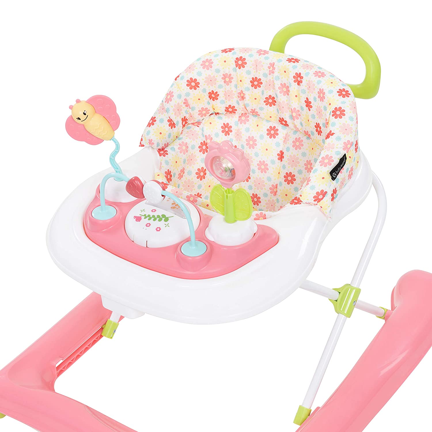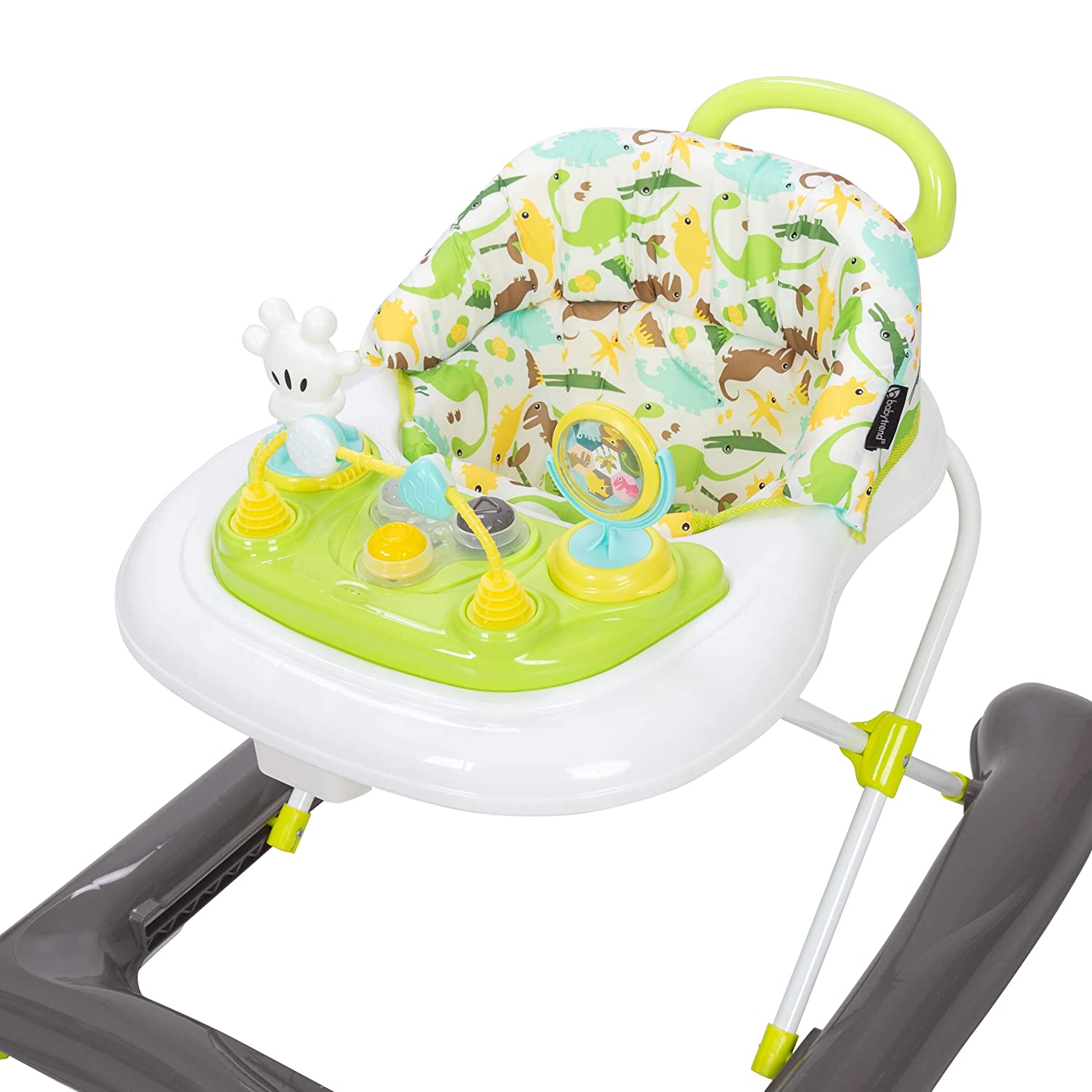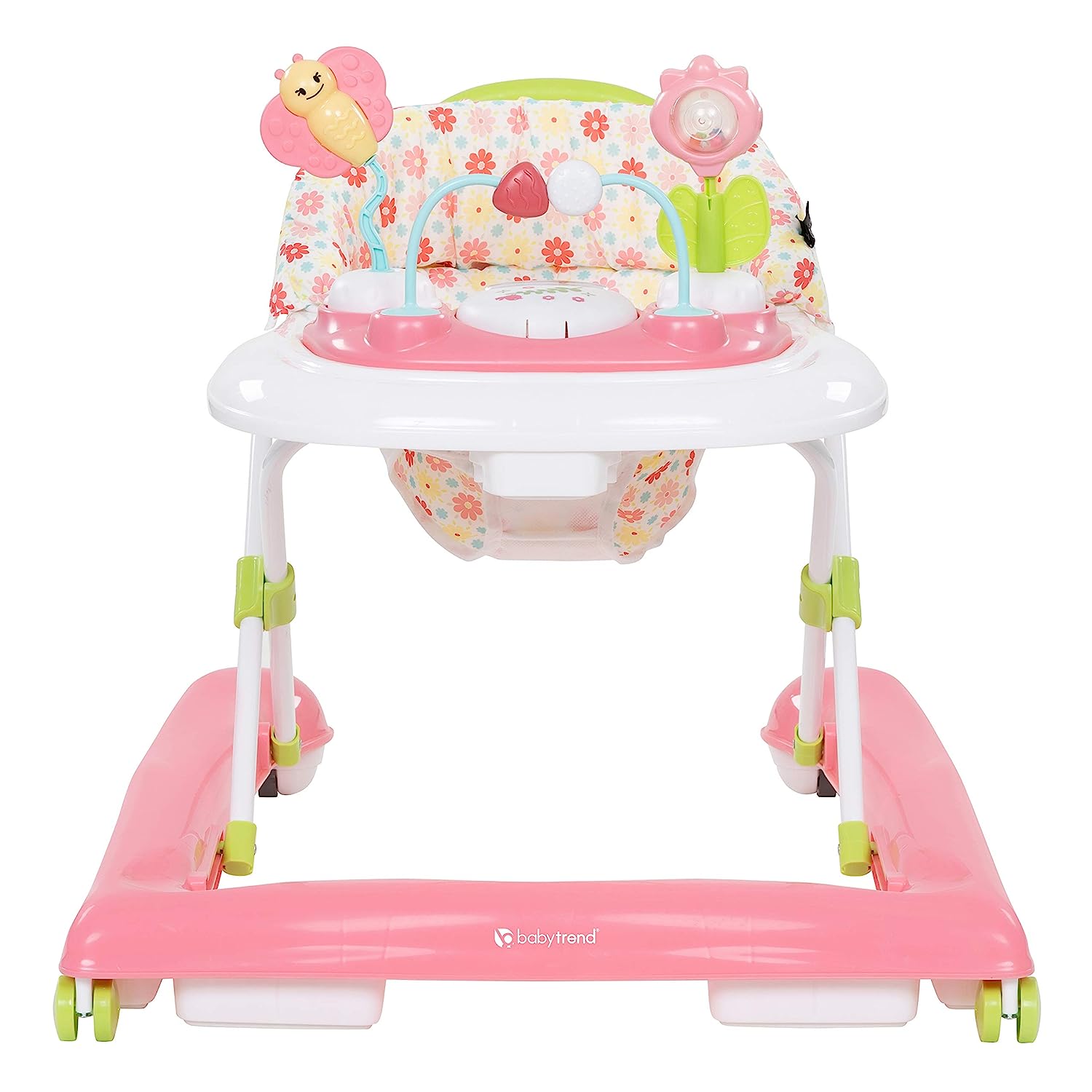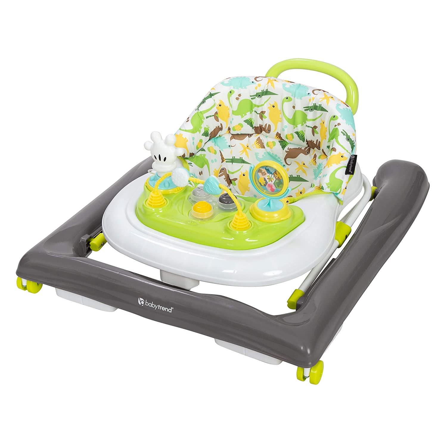 The Baby Trend 4.0 Activity Walker keeps your little one secure while they're on the move. The toy tray features a light and 15 melodies and removes to provide a space for snacks. When your baby is ready for more, they can hold the walk-behind bar on the back of the walker. The multi-directional wheels provide freedom of movement and the extra wide base provides superior support and stability so your baby can be confident as they navigate new terrain. This activity walker also features a 3-position height adjust.