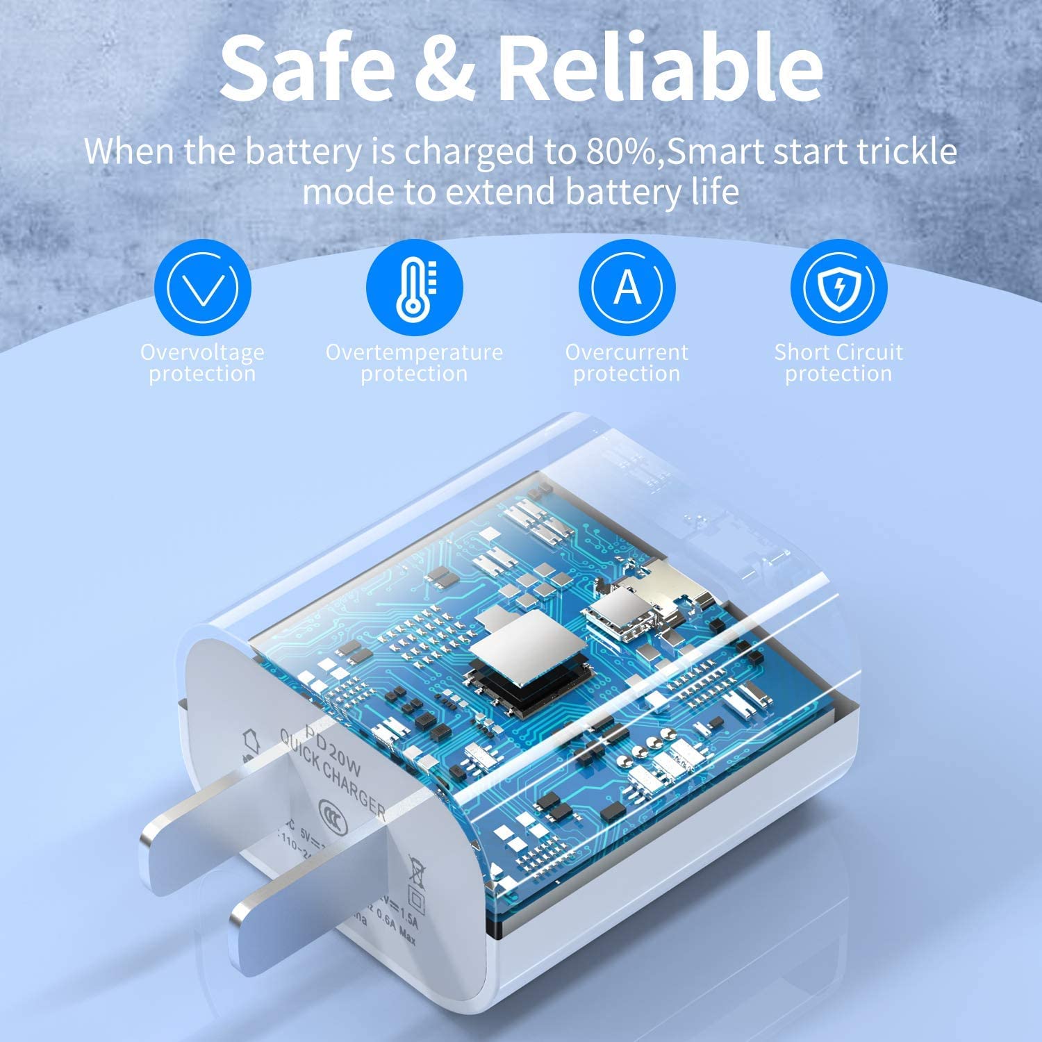 • 【With The Intelligent Chip Inside】20W USB C Charger Offers Multiple Safeguards Automatically. ETL, FCC, CE, ROHS Certificated. Multi-Charging Protection Keeps Your Device Safe From Over-Current Over-Voltage Over-Heating & Short-Circuiting. Exhaustive Protection While Charging.
