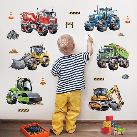 decalmile Construction Cars Wall Decals Trucks Tractor Vehicles Wall Stickers Baby Nursery Boys Bedroom Kids Room Wall Decor