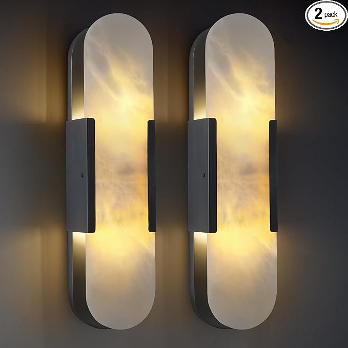 19.7 in Black Alabaster Wall Sconces, Natural Marble Wall Sconces Set of Two Indoor Alabaster Sconces for Living Room Modern Alabaster Sconces Wall Lighting for Dining Room Stairs Bedroom