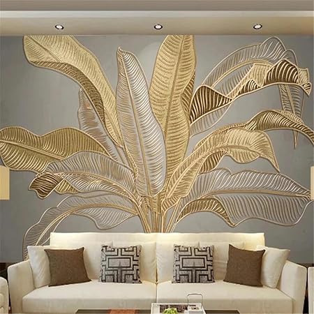 3D wallpaper mural atmospheric banana leaf plant light luxury gold relief line background wall for living room bedroom decoration