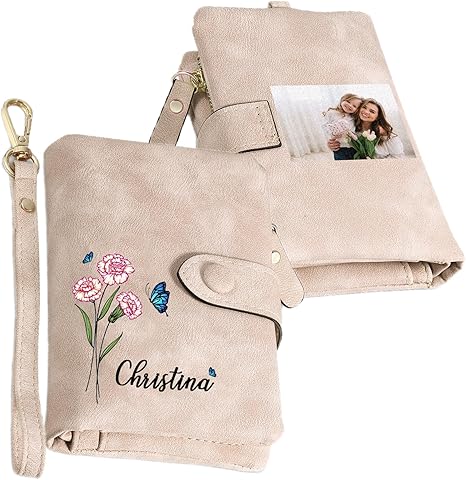 Personalized Wallet Women Small with Birth Flower and Name: Custom Bi-fold Women's Wallets - Ladies Minimalist Wallet for Women Teen Girls Gift (Pink, Birth Flower Name Photo)