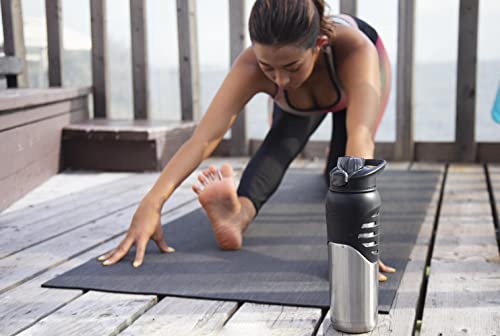 Details: INSULATED – Vacuum-insulated flask for maximum temperature retention keeps beverages cold for 20 hours. Lockable, leak-resistant lid also helps keep spout clean for a fresh drink all day. ONE HAND USE - When you're running or training, you don't always have a spare hand when you need to hydrate. That's why we made the pop top lid that only requires one hand to work. PRACTICAL – Our bottles feature a carabineer loop that can be used to clip or carry. Our lid can be locked down when not in use. Non-slip silicone bottom provides quiet set-down on any surface. Dishwasher safe with self-draining cap helps prevent dishwasher puddle UNBREAKABLE – Our unbreakable stainless-steel interior & exterior provide durability that you can count on. BPA-free bottle has a silicon mid-section for more secure grip. TOP QUALITY – Made for kids and adults. BPA and Lead Free. Perfect for all sports, the gym, around the house, for travel, camping, and more. Fits on bike holder.