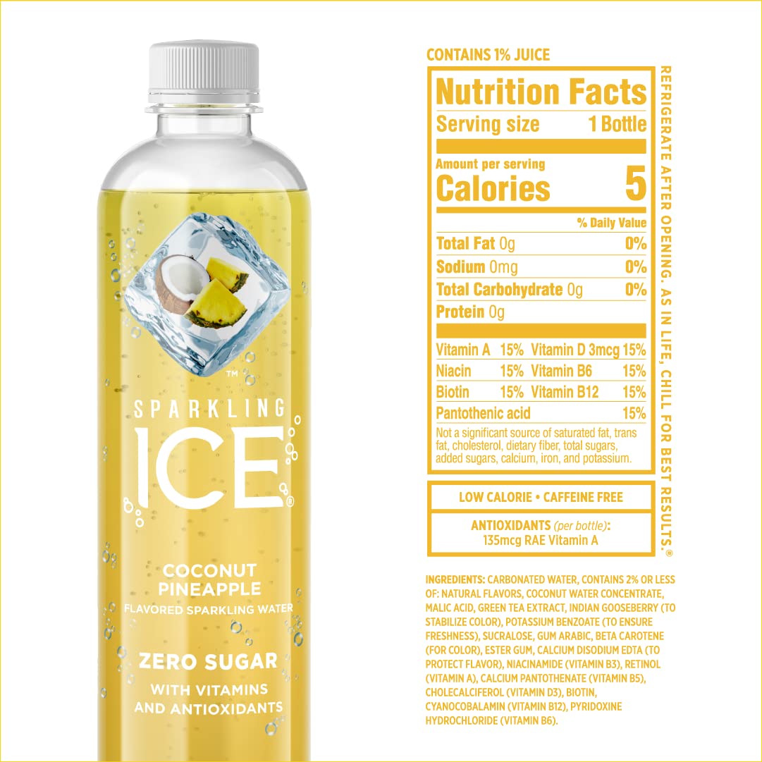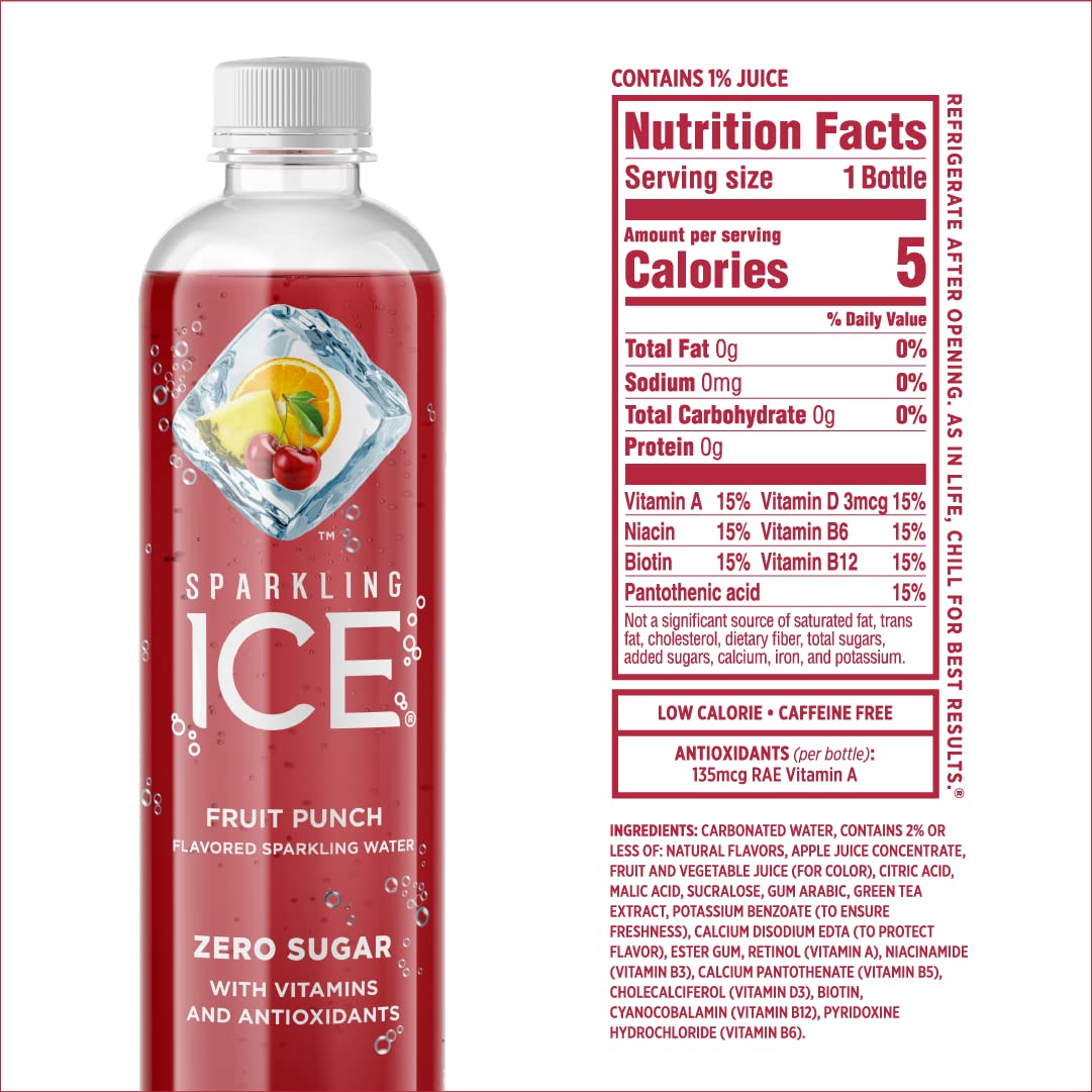 This best-selling, succulent flavor makes for one sweet experience. Sparkling Ice Black Raspberry is a fizzy, flavorful sparkling water, without all the calories. Sparkling Ice Black Raspberry flavored sparkling water contains 0g sugar, only 5 calories per bottle, and 0g carbs. Made with better-for-you ingredients, this low-calorie carbonated water is bursting with real fruit flavor, is made with colors from natural sources, and contains vitamins and antioxidants. Enjoy Sparkling Ice as a mocktail or mix it with your drink of choice for a delicious, low calorie cocktail. The product ships in a pack of 12 bottles. Each sparkling water bottle contains 17 fl oz.