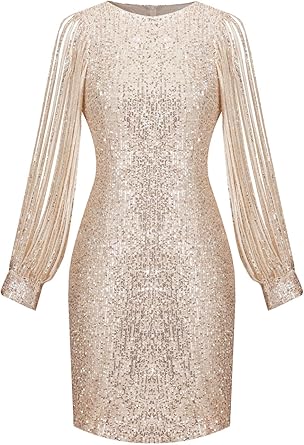 MISSCHEN Women's Elegant Sequin Glitter Bodycon Stretchy Tassel Sleeve Cocktail Party Dress