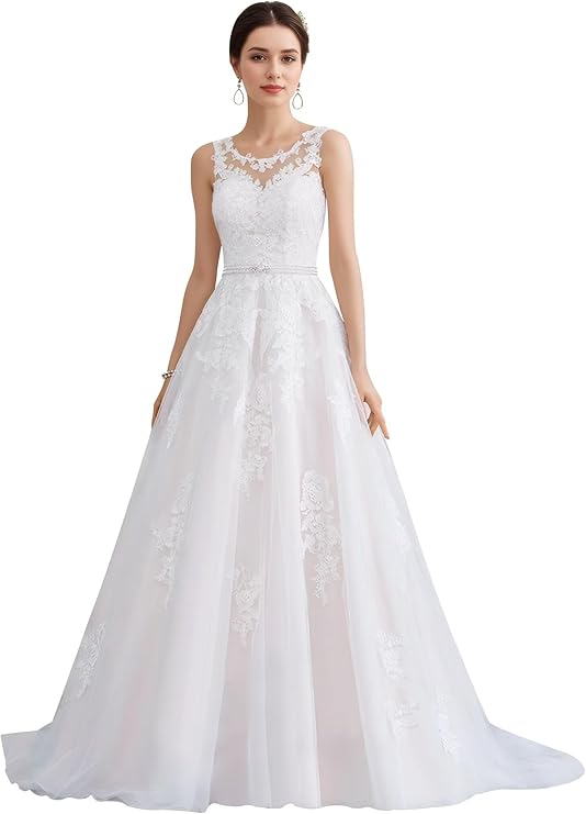 Women's Lace Appliques Bridal Dresses for Wedding Long Bridal Gowns for Bride A-Line Bridal Dresses Sleeveless