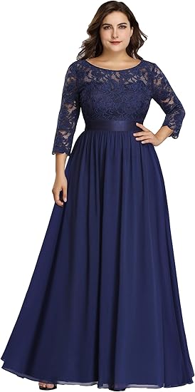 Alisapan Women's Plus Size Half Sleeves Lace Chiffon Floor Lenght Formal Evening Dress
