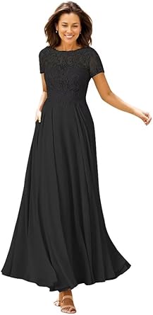 Mother of The Bride Dresses for Wedding Lace Applique Short Sleeve Chiffon A-line Long Formal Mother of The Groom Dress