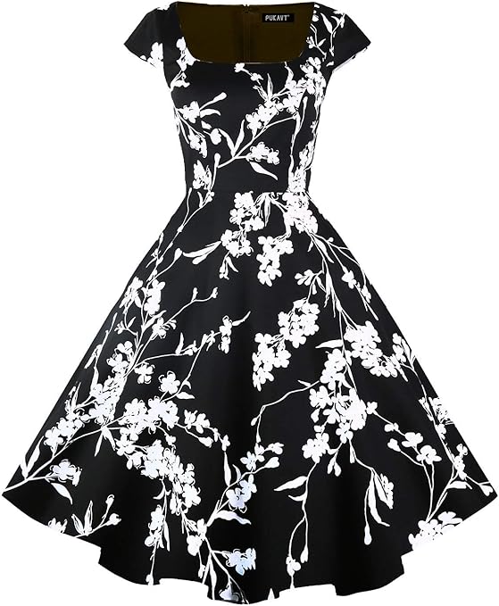PUKAVT Women's Cocktail Party Dress Cap Sleeve 1950 Retro Swing Dress with Pockets