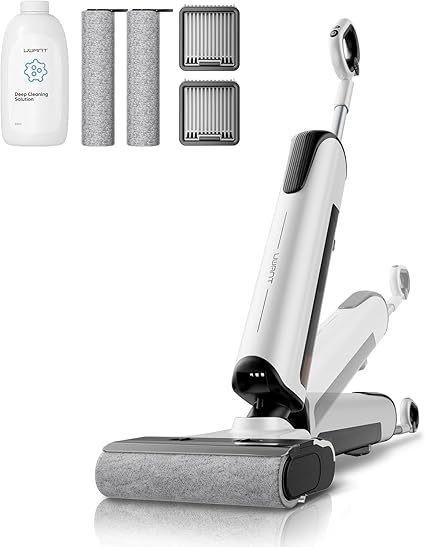 uwant Wet Dry Vacuum Cleaner, 18000kpa Powerful Suction, Self Cleaning, 180ï�Lay-Flat Smart Cordless Vacuum Mop, 40 Minutes Long Runtime, Dual-Sided Edge Cleaning, for Hard Floors, Milky