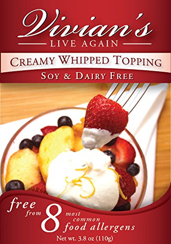 This vegan whipped cream replacement is unbelievably smooth and creamy. Each packet makes 2 1/2 cups topping and will not lose whip over time, staying light and fluffy for at least a week. Enjoy the creamy vanilla flavor of whipped topping without any Soy, Dairy, Gluten, Nut, Peanut, or Egg! Visit us online for recipe ideas and more!