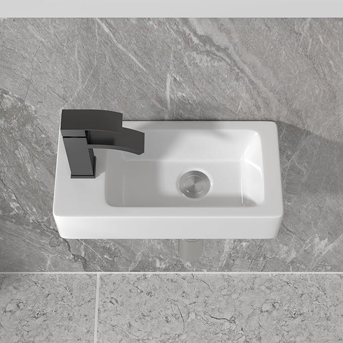 Floating Vessel Sink For Bathroom - Fulorni 15"x7" Bathroom Vessel Sink Rectangular Wall Mounted White Ceramic Porcelain Vanity Sink Left Hand Bowl Basin