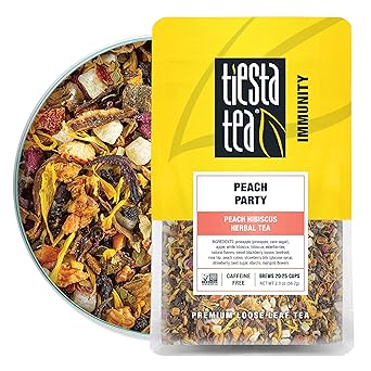 Tiesta Tea - Peach Party | Peach Hibiscus Herbal Tea | Premium Loose Leaf Tea Blend | Non-Caffeinated Fruit Tea | Make Hot or Iced & Up to 25 Cups | Made w/Natural Ingredients - 2oz Resealable Pouch