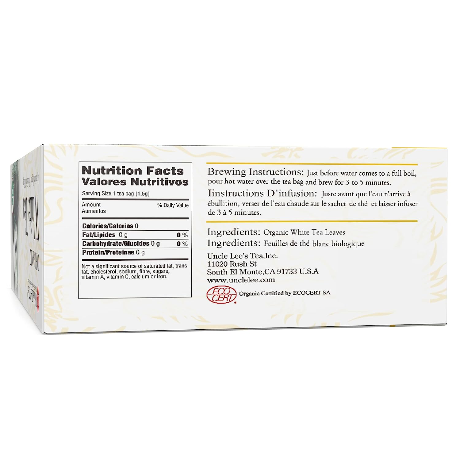 Uncle Lee's Tea Organic White Tea, Tea Bags, 100-Count Boxes (Pack of 4)