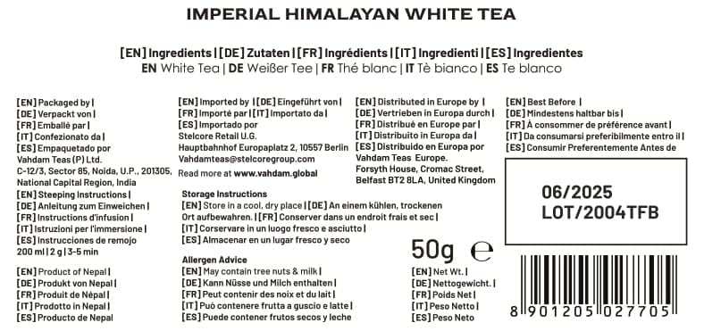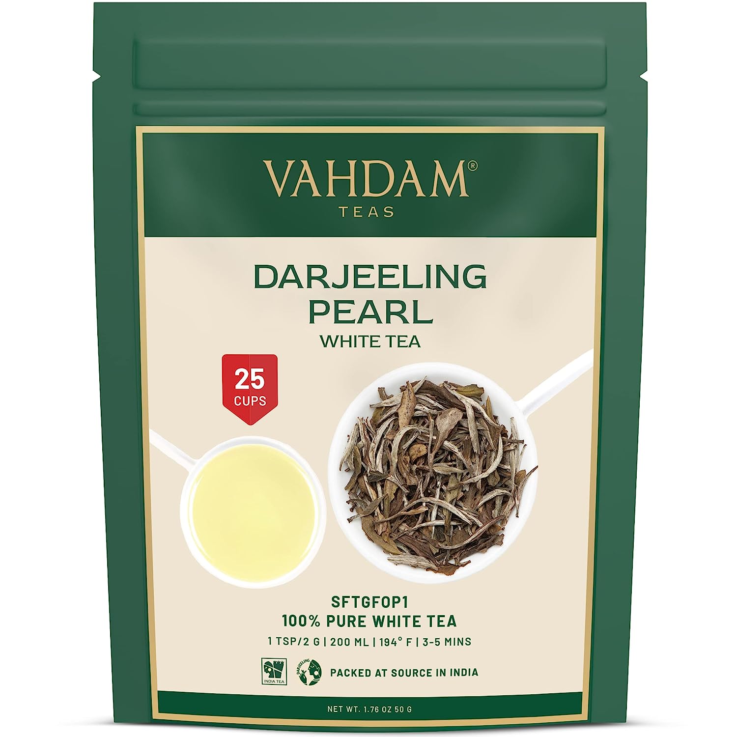VAHDAM, Imperial White Tea Leaves from Himalayas (25 Cups/1.76oz) High Elevation Grown Loose Leaf Tea - Vacuum Sealed Pack