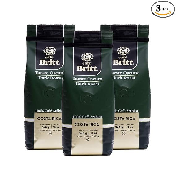 Caf�© Britt´ï - Costa Rican Dark Roast Coffee (12 oz.) (3-Pack) - Whole Bean, Arabica Coffee, Kosher, Gluten Free, 100% Gourmet & Dark Roast