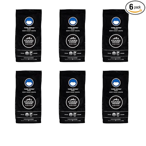 Kicking Horse Three Sisters Medium Roast Whole Bean Coffee (Pack of 6), 10 Oz | Certified Organic, Fairtrade