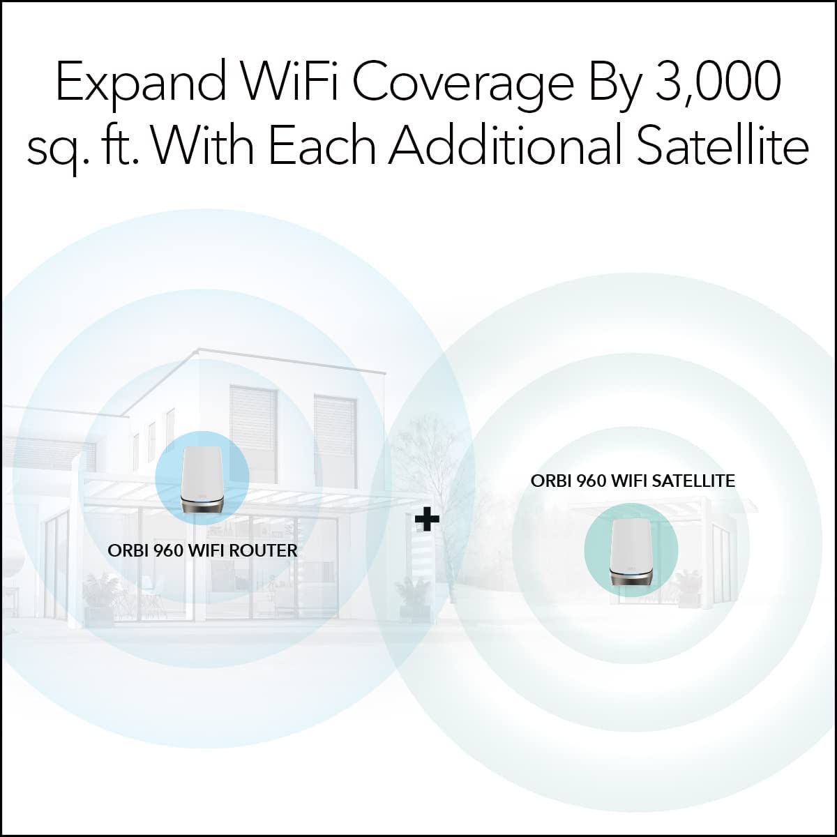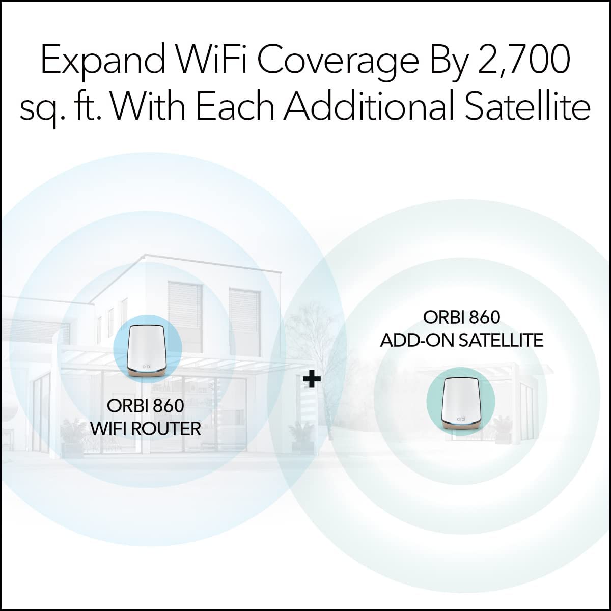 • Expand WiFi coverage with a push of a button by adding an Orbi 860 satellite (sold separately). Take your WiFi into the future with patented Orbi Mesh