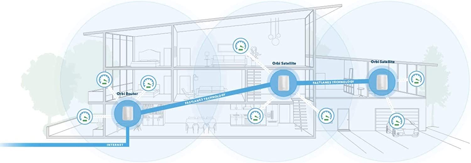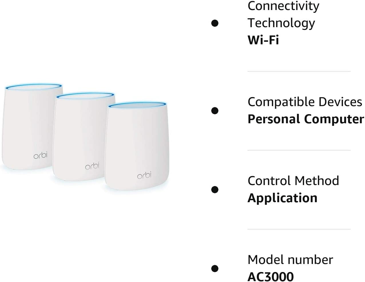 NETGEAR Orbi Ultra-Performance Whole Home Mesh WiFi System - WiFi router and two satellite extender with speeds up to 3Gbps over 7,500 sq. feet, AC3000 (RBK53) (Renewed)