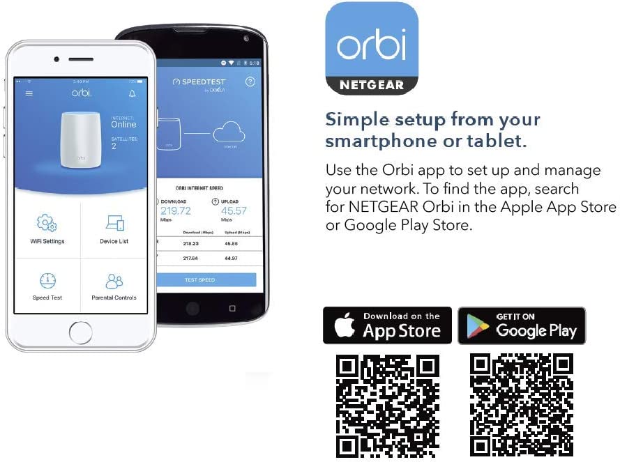 • Simple setup with the Orbi app — create guest network, access parental controls, and run speed tests right from the app