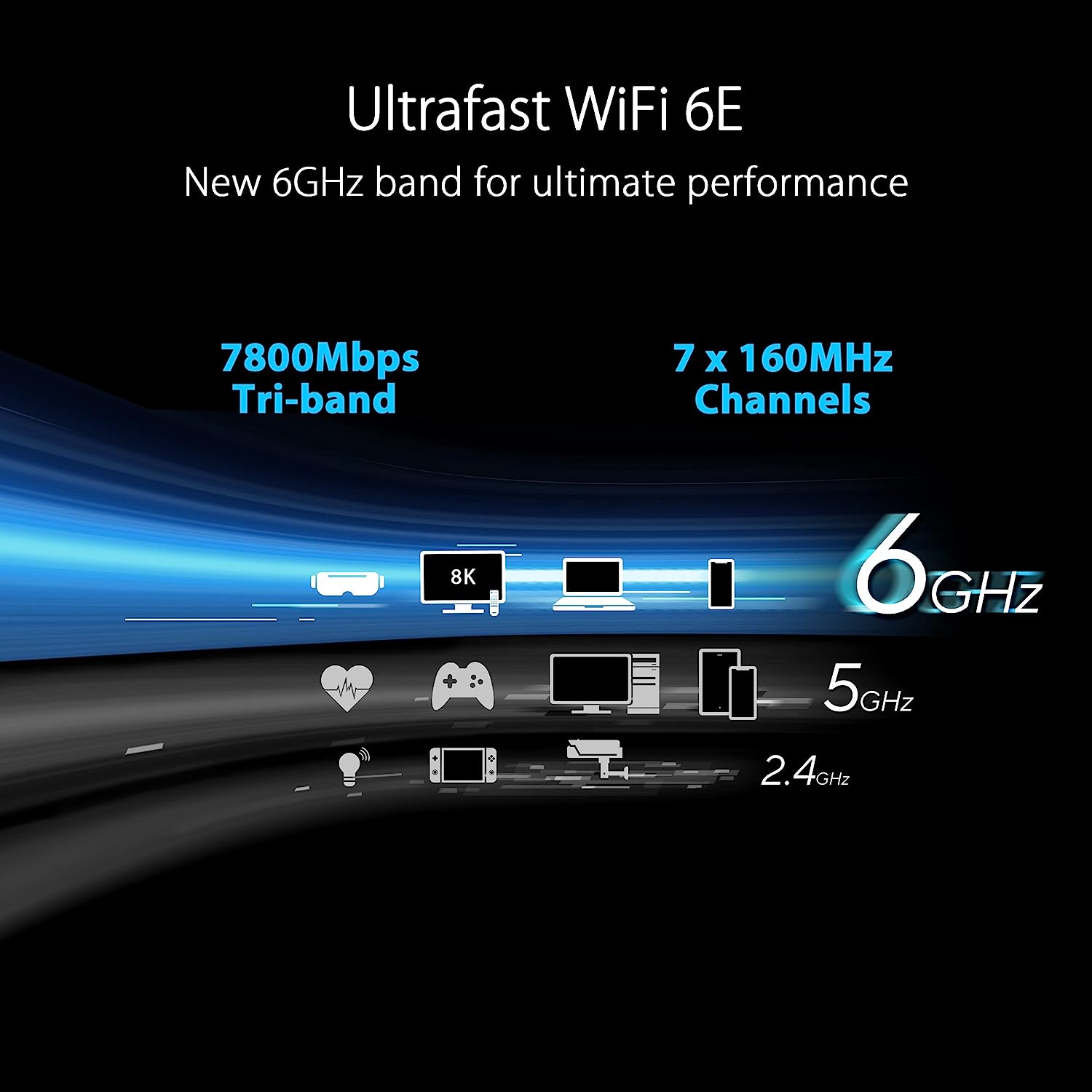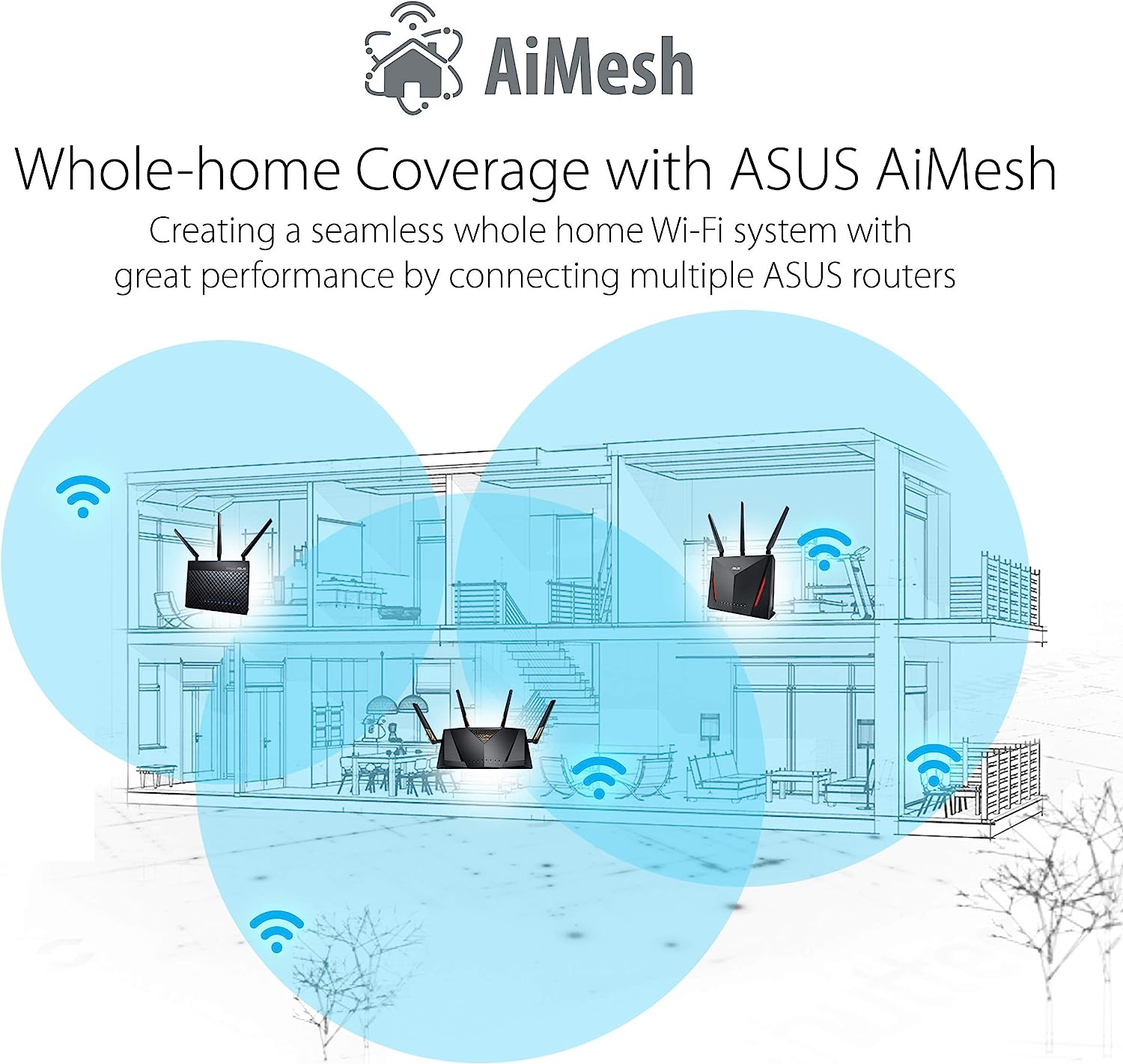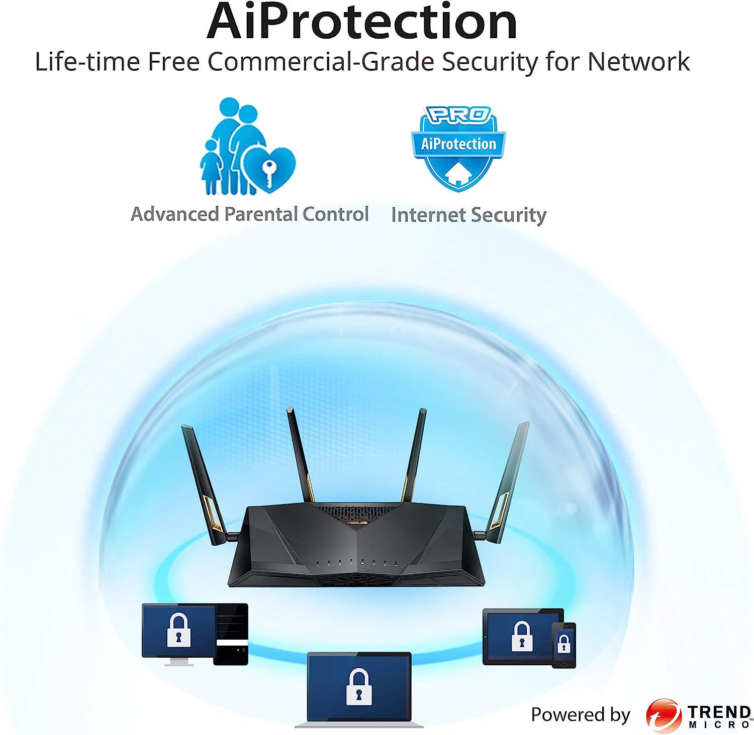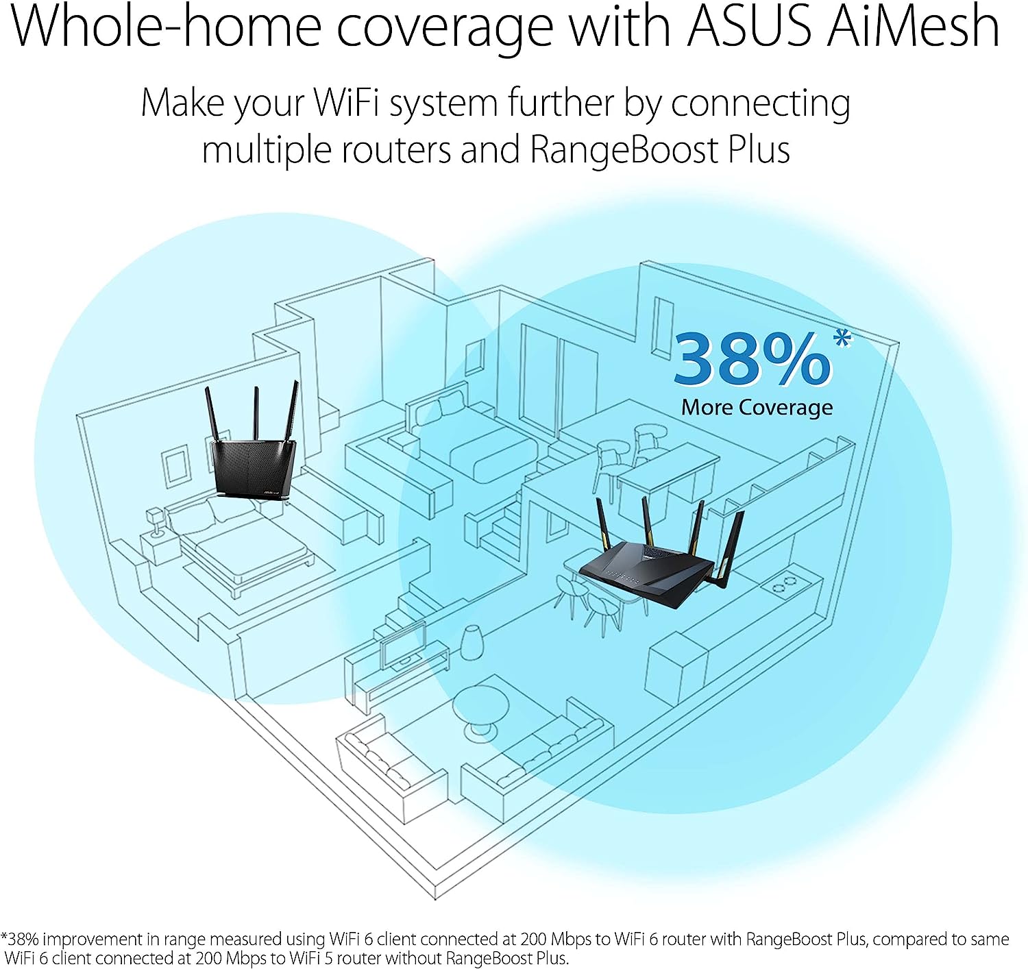 RT-AX88U Pro is a 4x4 dual-band WiFi router that provides 160MHz bandwidth and 1024-QAM for dramatically faster wireless connections. With a total networking speed of about 6000Mbps — 1148Mbps on the 2.4GHz band and 4804Mbps on the 5GHz band — RT-AX88U Pro is 2.3X faster than 802.11ac 4x4 dual-band routers.