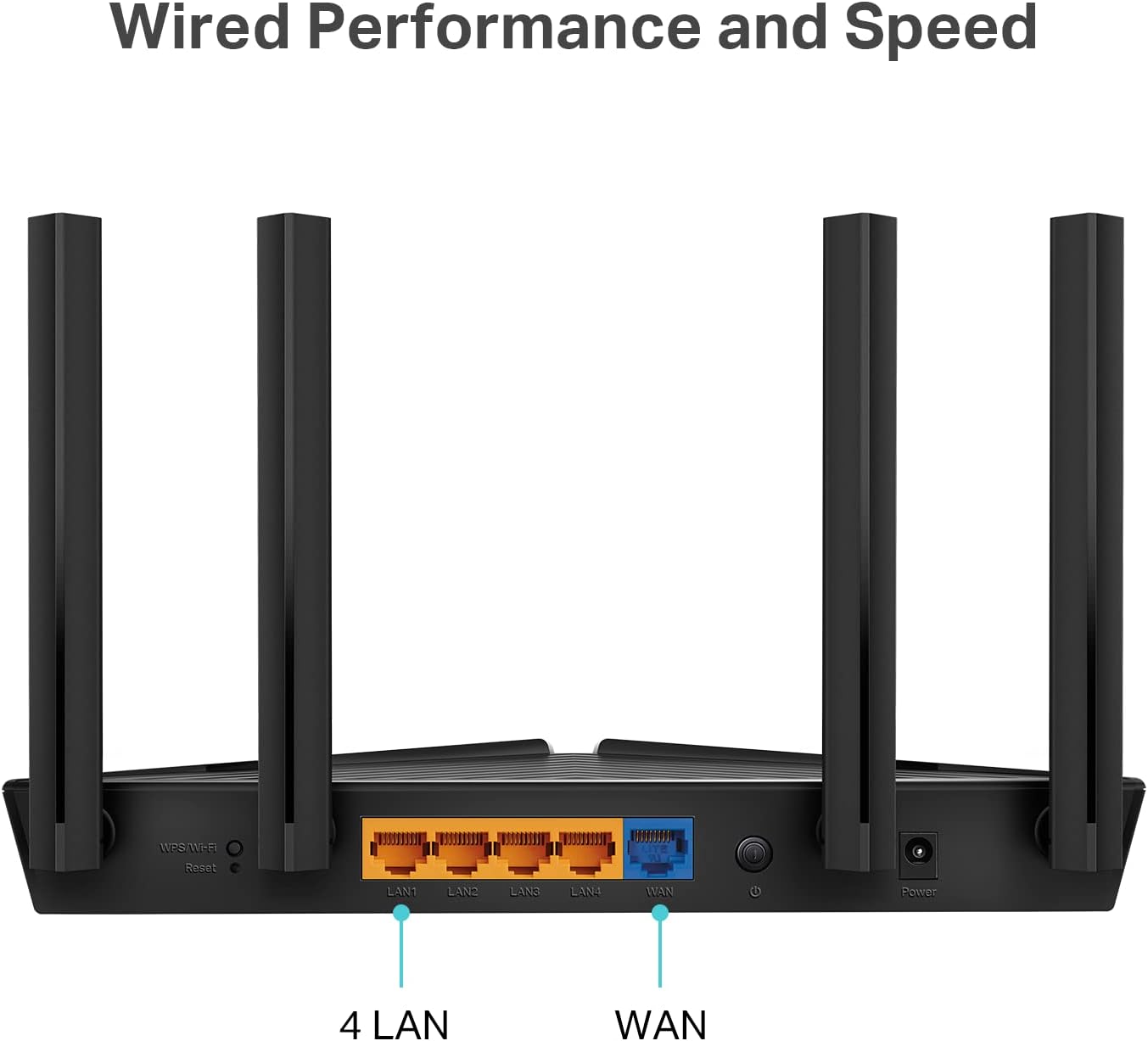 Wi-fi 6 router AX1500 Wi-Fi 6 delivers a huge boost in speed and total capacity. Get on the latest WiFi technology to wipe out all the annoying slowdown, and enjoy the future network that loads faster and connects more. The latest 1024-QAM and higher symbol rate work to boost speeds for newer devices to the Gigabit level. Connect to a 1 Gbps WiFi network with your phone or laptop, and enjoy speeds comparable to plugging in an Ethernet cable. Add more WiFi devices without dragging down performance. OFDMA allows multiple devices to use one band at the same time, enabling your WiFi to bear more devices compared to the same speed level Wi-Fi 5 router. Wi-Fi 6 increases the efficiency of transmits data, cutting the lag. Enjoy flawless video and audio chats, better gaming speeds, and instantaneous video loading on different devices—all at the same time. Beamforming technology and 4 high-gain antennas combine to generate strong, reliable Wi-Fi signal throughout your home, delivering smooth and stable connections for all your devices. The Gigabit Ethernet ports allow you to take full advantage of your broadband speed up to 1 Gbps. Plug your PCs, smart TVs, and game consoles into one of the four Gigabit Ethernet LAN ports for fast, reliable wired connections.