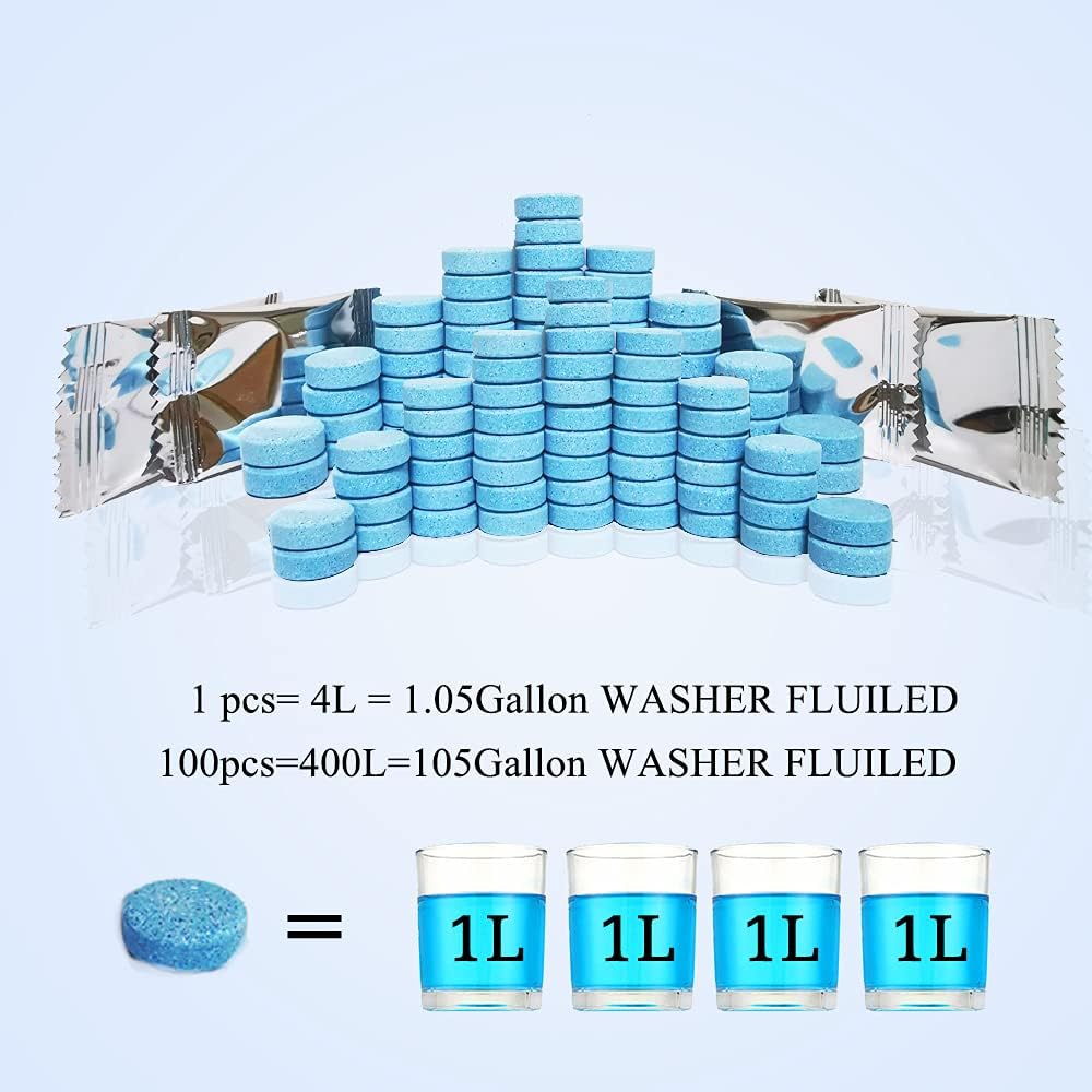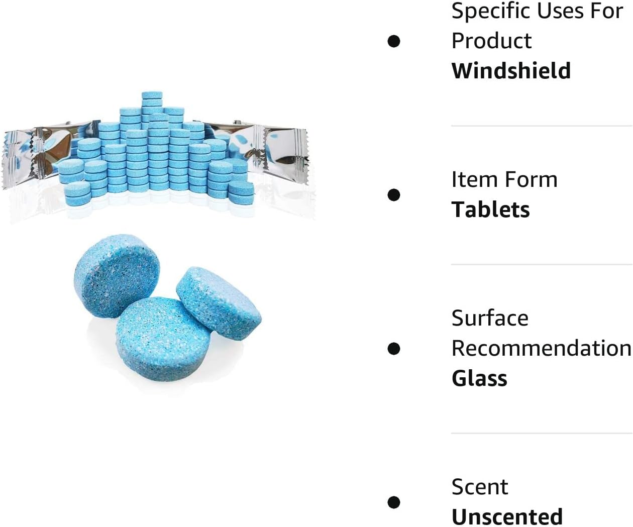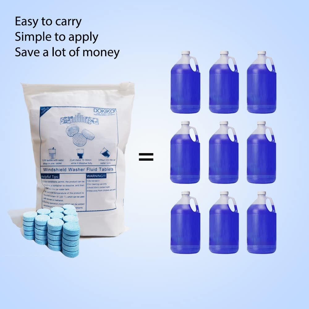 DOKIKO 50 Pcs Car Windshield Washer Fluid concentrate Tablets,Windshield Wiper Fluid,1 Pack Makes 52.5 Gallons,1 Piece Makes 1.05 Gallons(Winter: Use With De-icer or Methanol)