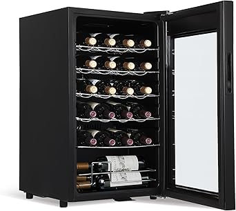 28 Bottle Compressor Wine Cooler Refrigerator, Wine Fridge Freestanding Wine Cellar for Red Wine, White, Champagne, Sparkling Wine with Digital Temperature Control, Soft LED Light