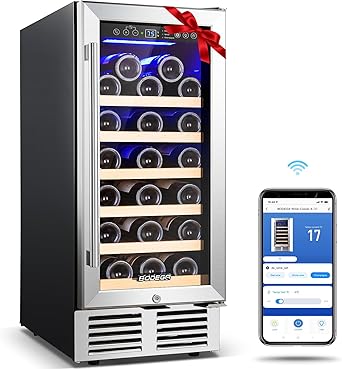 BODEGA 15 Inch wine fridge, 31 Bottles Mini Fridge, Wine Cooler Refrigerator with Double-Layer Glass Door, Wine cooler with smart chip control, Temperature Memory, Built-in or Freestanding