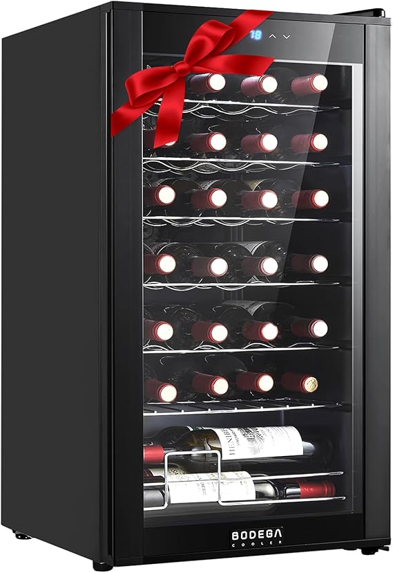 BODEGACOOLER 28 Bottle Compressor Wine Cooler Refrigerator, Mini Fridge with 41-64.4´�F Digital Temperature Control Glass Door, Small Freestanding Wine Refrigerator for Red, White and Champagne