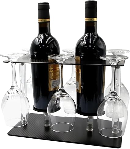Carbon Fiber Tabletop Wine Rack 2 Bottles Wine Rack 6 Wine Glasses Holder, Assembly Required Wine Storage and Display Rack
