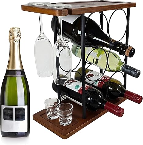 Wine Racks Countertop - Wine holder solutions for Home bar. Contains Wine glass holder perfect for your Wine cabinet or Mini bar it holds until 6 Wine bottles and has 2 glasses holder