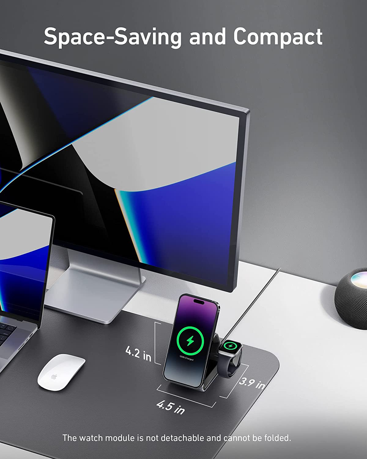 • A Place for Your Apple Devices: All-in-one wireless charging station for your iPhone, Apple Watch, and AirPods.