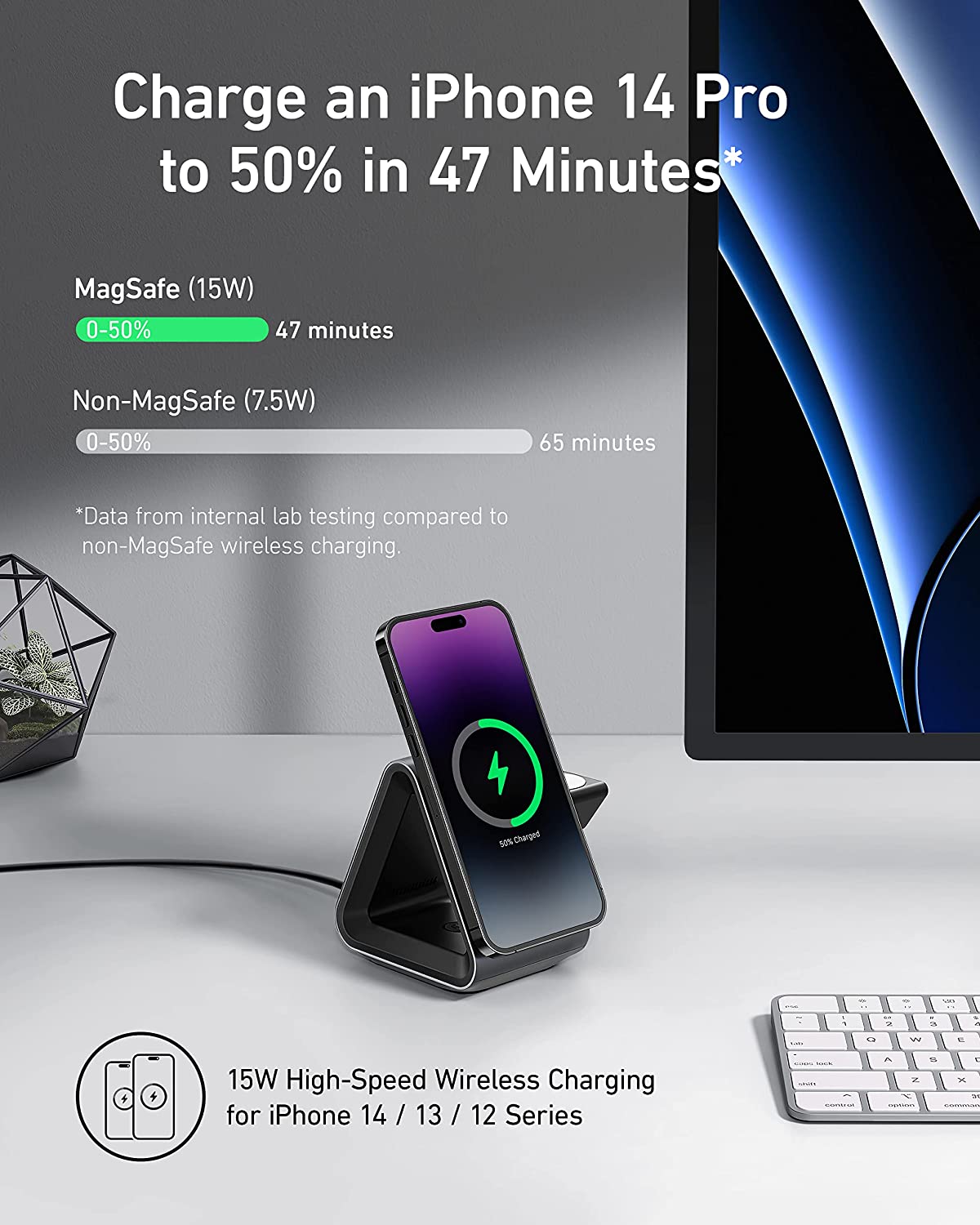 • Fast, One-Step Charging: Make charging a snap and enjoy 15W high-speed charging every time, thanks to the official MagSafe module. Charge an iPhone 14 Pro Max to 50% in just 47 minutes*.