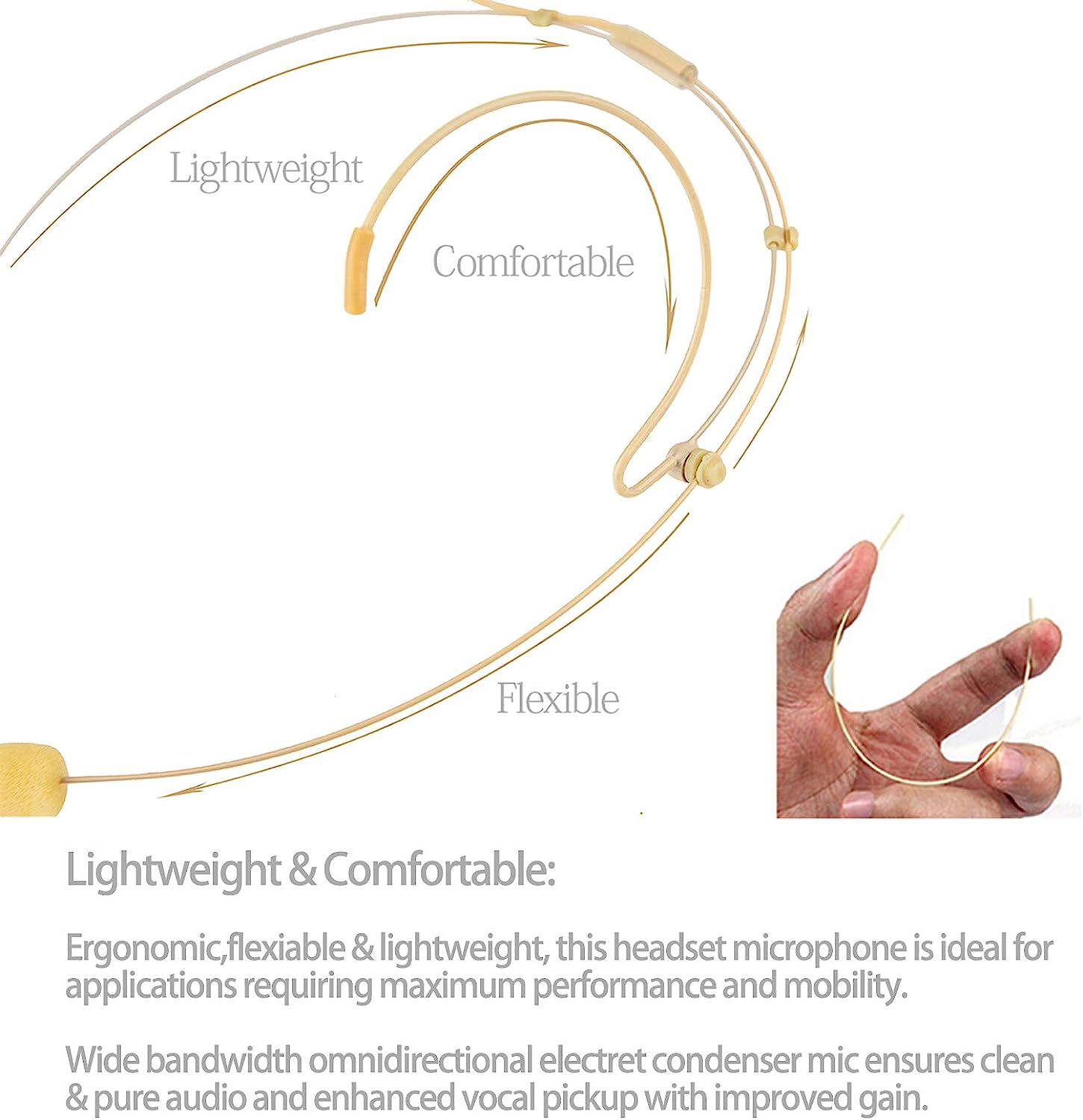 • Convenient & Lightweight Design - Beige over ear design, slim, cozy, in addition, this microphone features a supremely light-weight build.