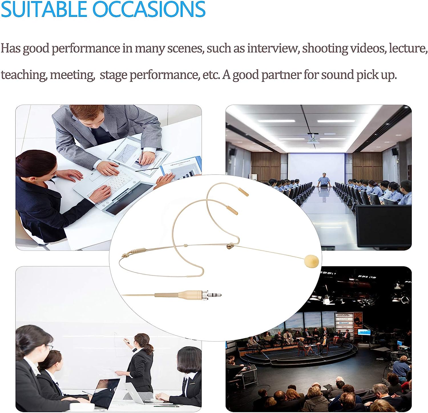 Sujeetec Microphone Headset Headworn Earset Over Ear Hanging Mic for Sennheiser Wireless System Bodypack Transmitter, Ideal for Lectures, Live Performance, Theater, Podcasts – Beige