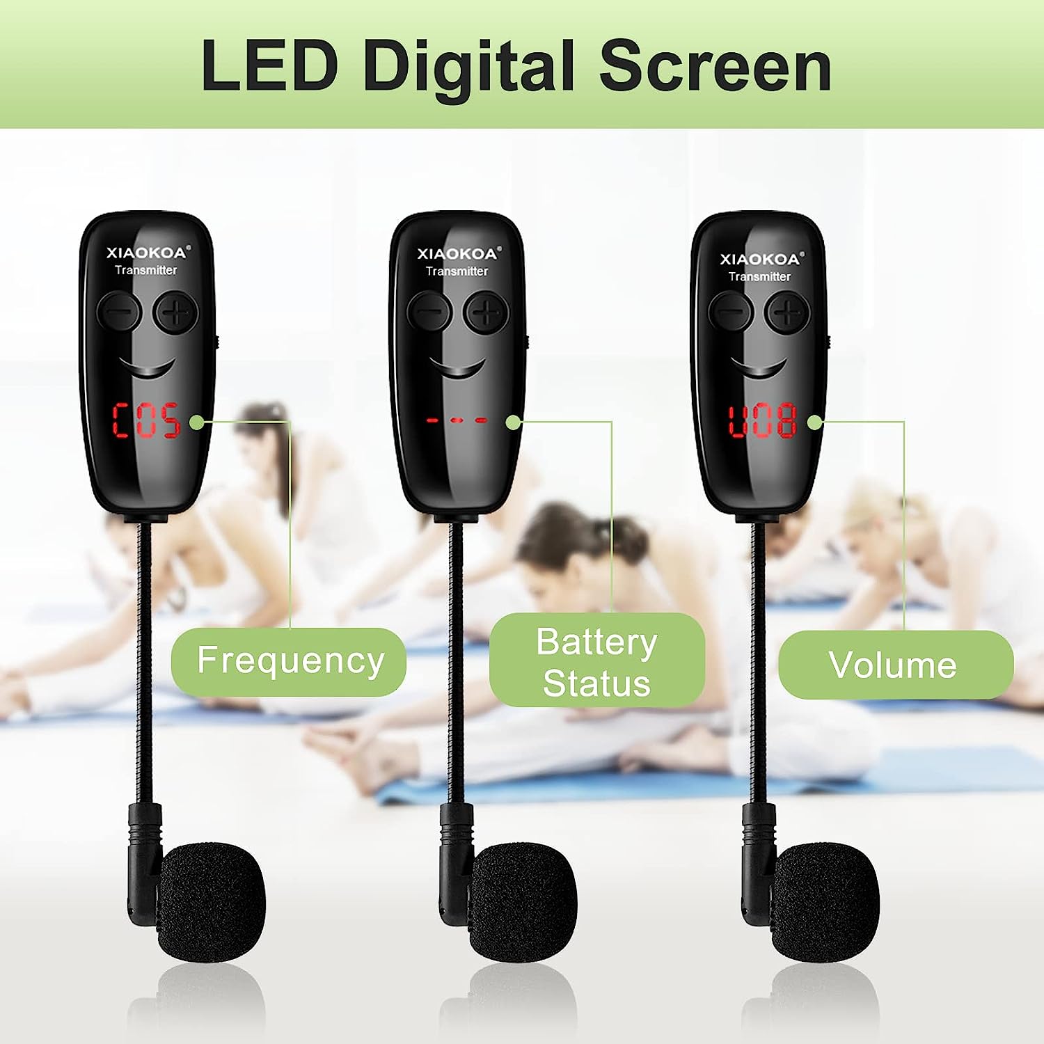 XIAOKOA Head Microphone,Wireless Microphone Headset,LED Digital Display Wireless Mic for Fitness,165FT Range,for Amplifier,Mic Speaker,PA System
