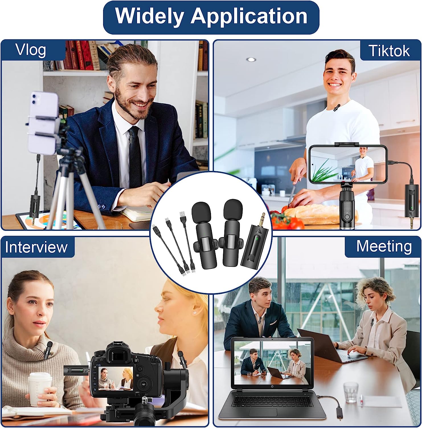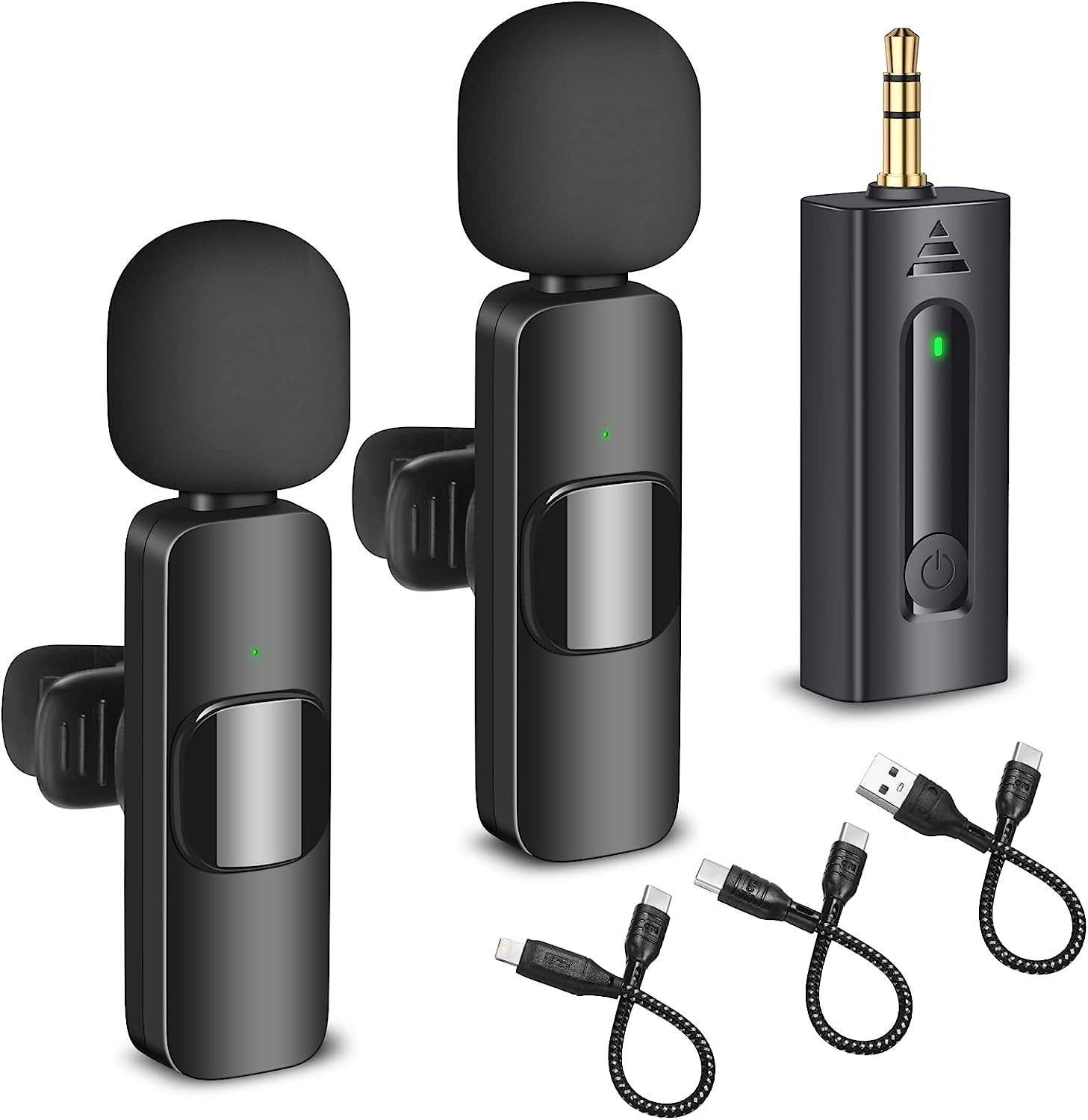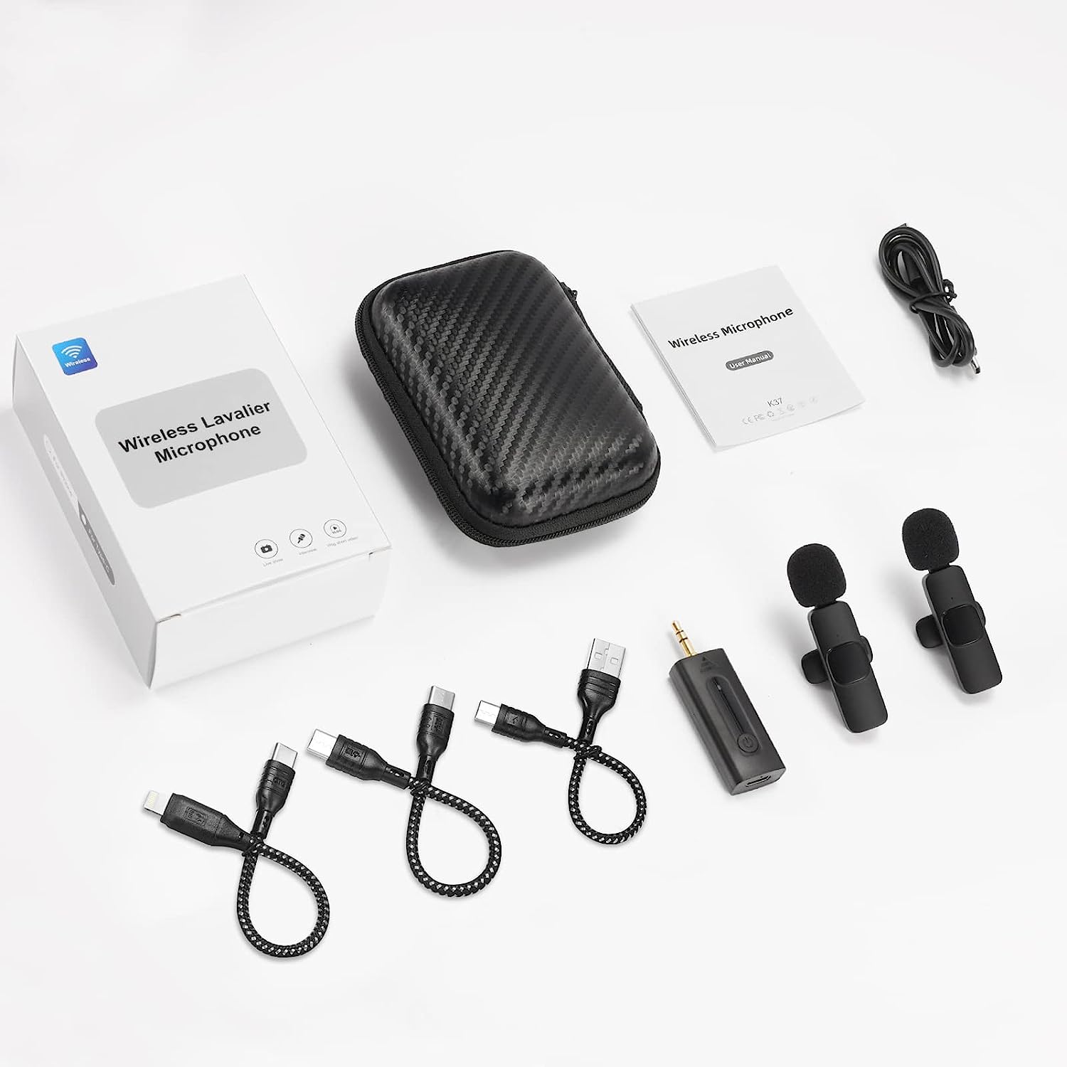 BZXZB Wireless Microphone for iPhone, Android Phone, Camera, Laptop, MacBook, Professional Dual Lavalier Clip on Mic with 3 Cable Adapters for Video Recording, Vlog, Tiktok, YouTube, Meeting